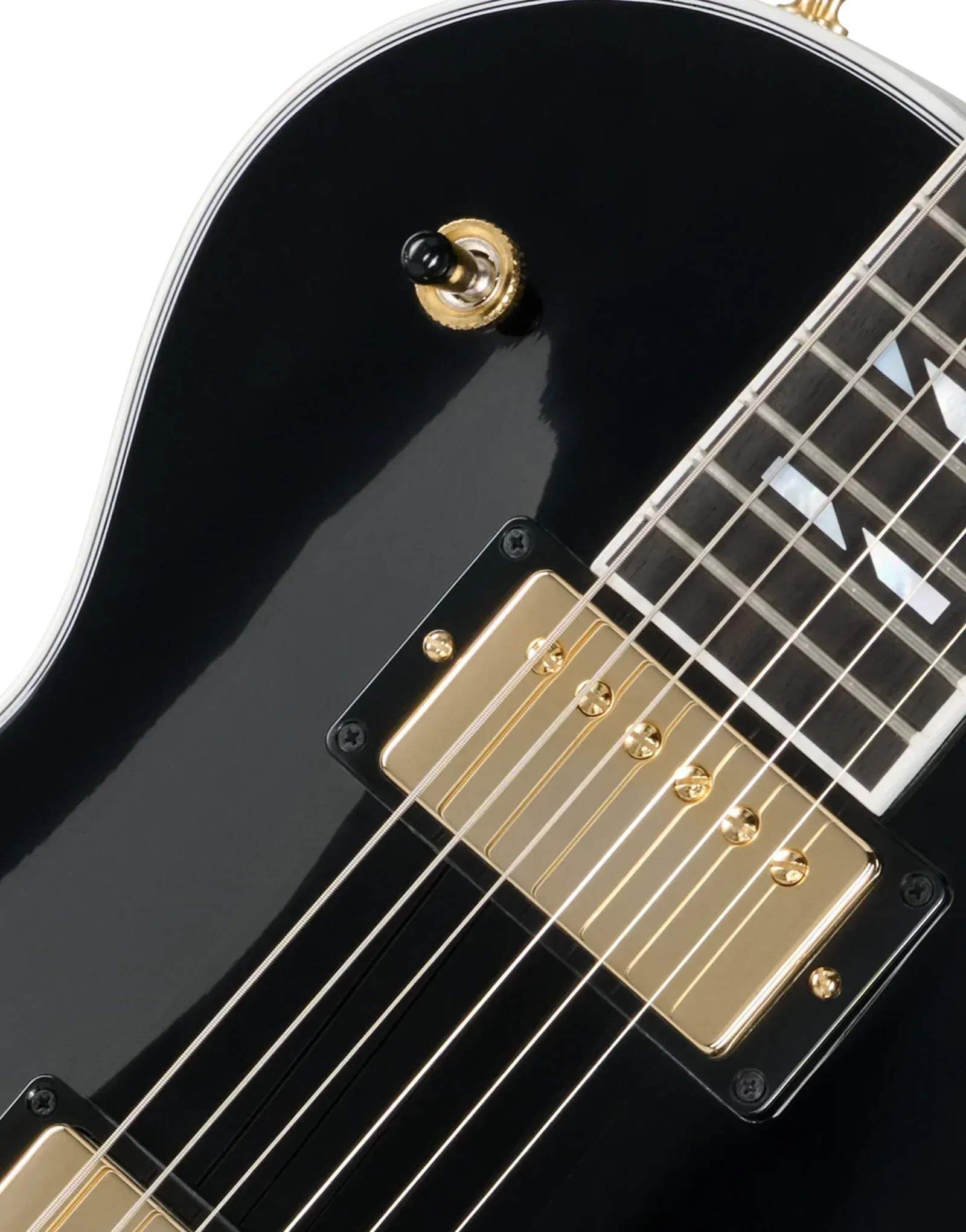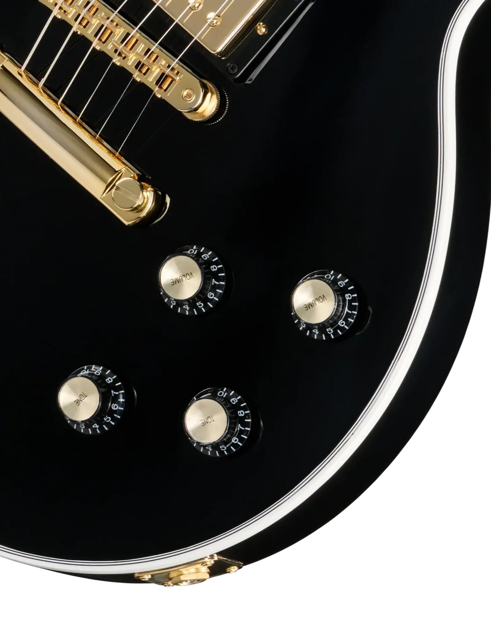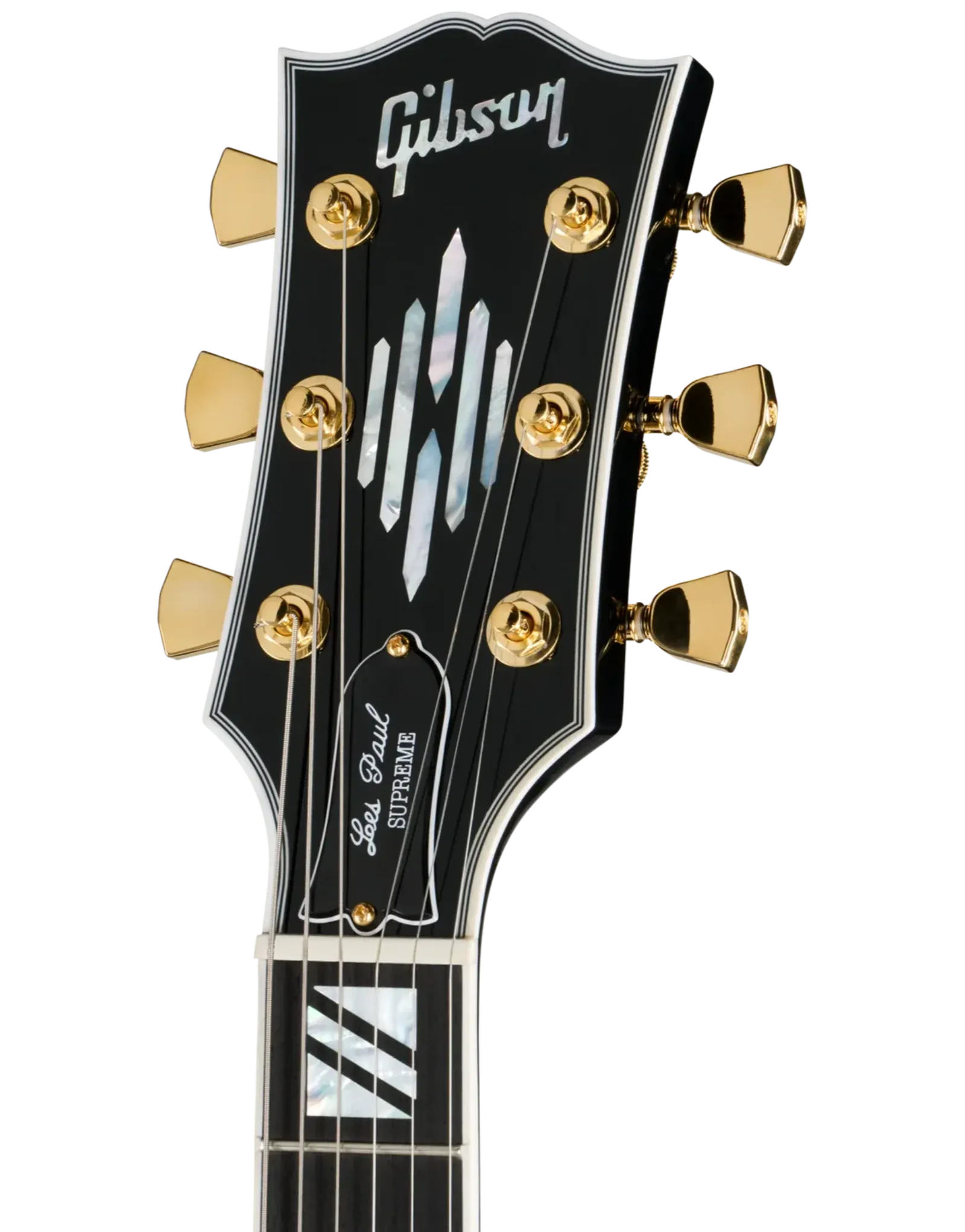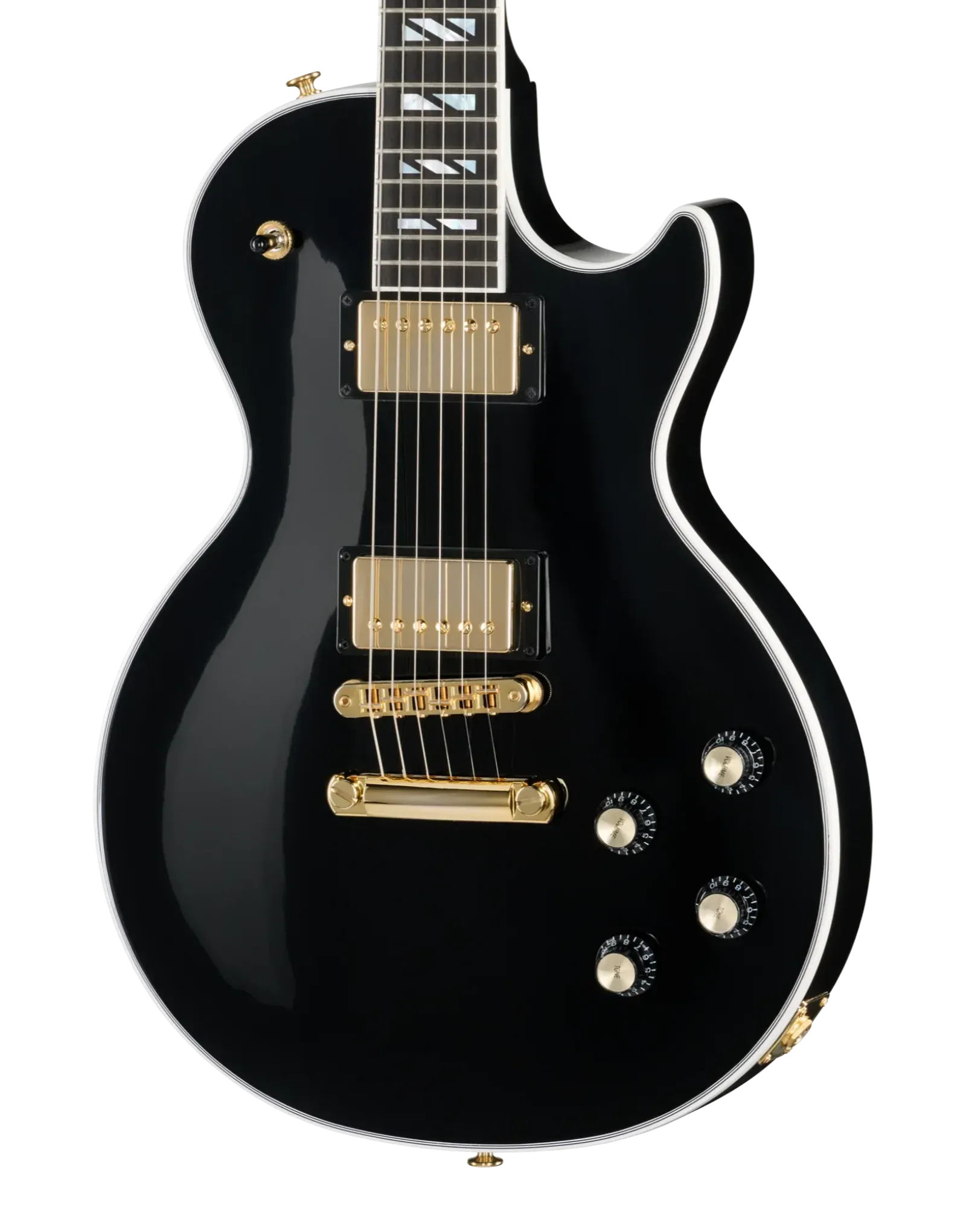 The Gibson Les Paul Supreme Ebony brings flagship-level refinement to a familiar platform, combining classic tonewoods with a more versatile electronics layout. A maple top paired with a mahogany body delivers the expected Les Paul balance of warmth, sustain, and clarity, while the pickguard-free design keeps the look clean and streamlined.
