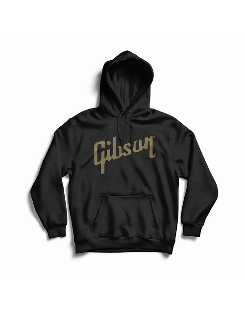Classic black unisex hoodie featuring the historic Gibson logo in gold across the chest - found on all Gibson instruments since the late 1940s. 52% Cotton and 48% Polyester. Unisex Sizing. Machine cold wash with similar colours.