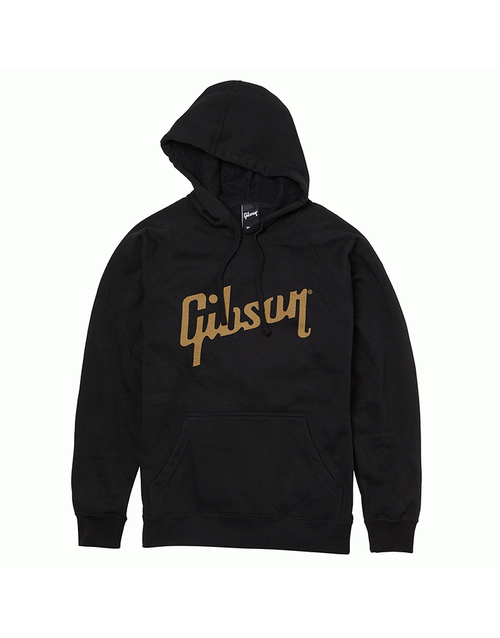 Classic black unisex hoodie featuring the historic Gibson logo in gold across the chest - found on all Gibson instruments since the late 1940s. 52% Cotton and 48% Polyester. Unisex Sizing. Machine cold wash with similar colours.