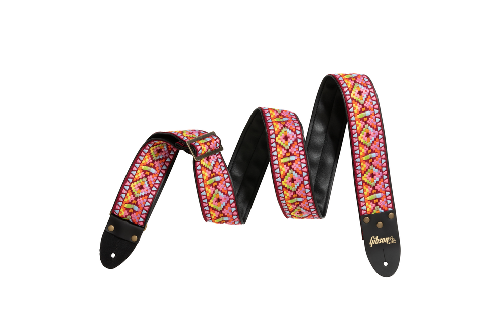 Gibson Matching Set of Guitar Strap, Dog Collar & Pick Tag Pink Medium 18-27Kg