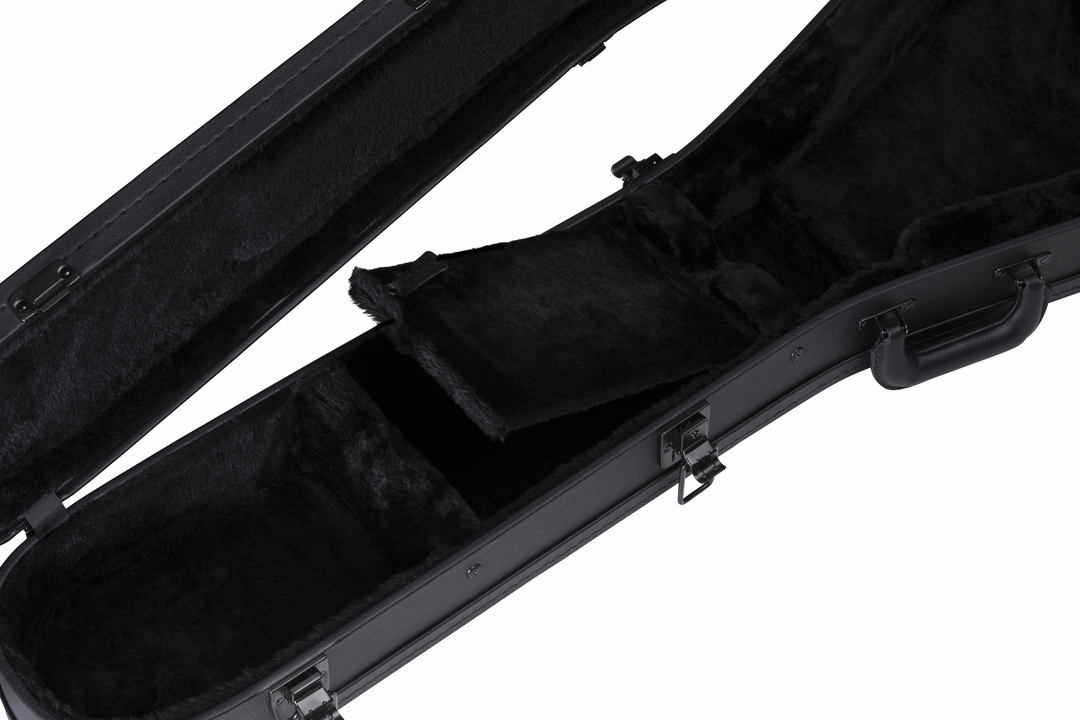 The Gibson Modern Series hardshell case for Flying V is designed to protect your Gibson instrument in style. Featuring the highest quality materials and hardware, they meet Gibson's stringent factory specifications and are available in a variety of sizes so they'll fit your cherished Gibson like a glove. The Gibson Modern Series hardshell case for Flying V features Heavy Duty Latches, Accessory compartment, and Black plush interior lining.