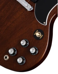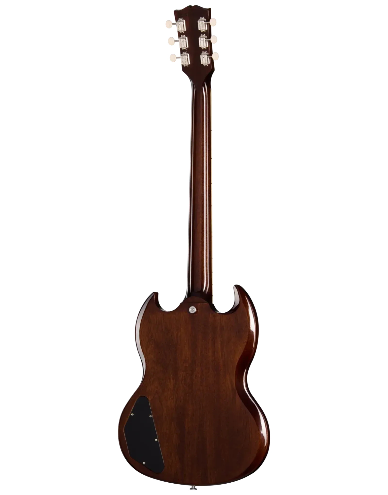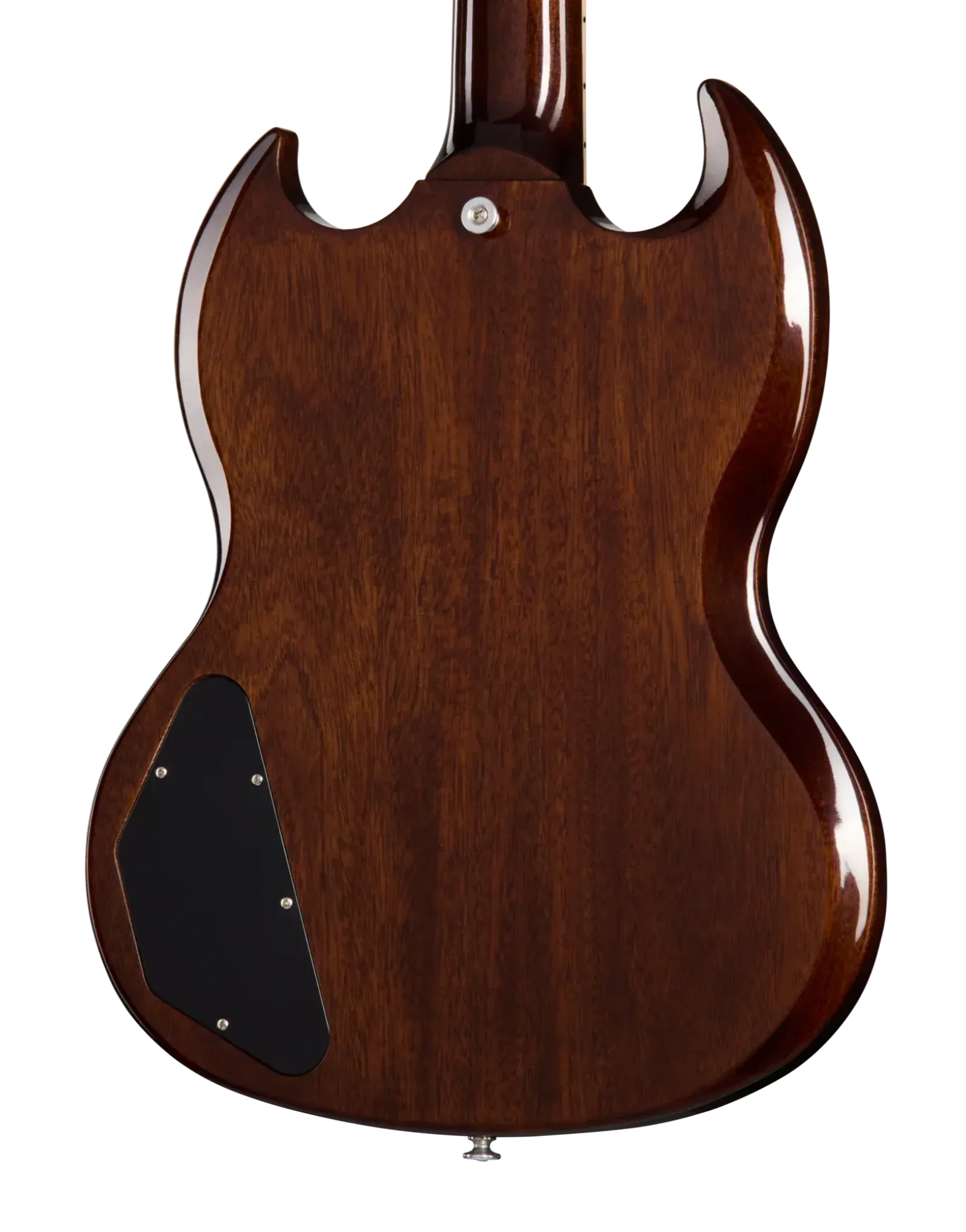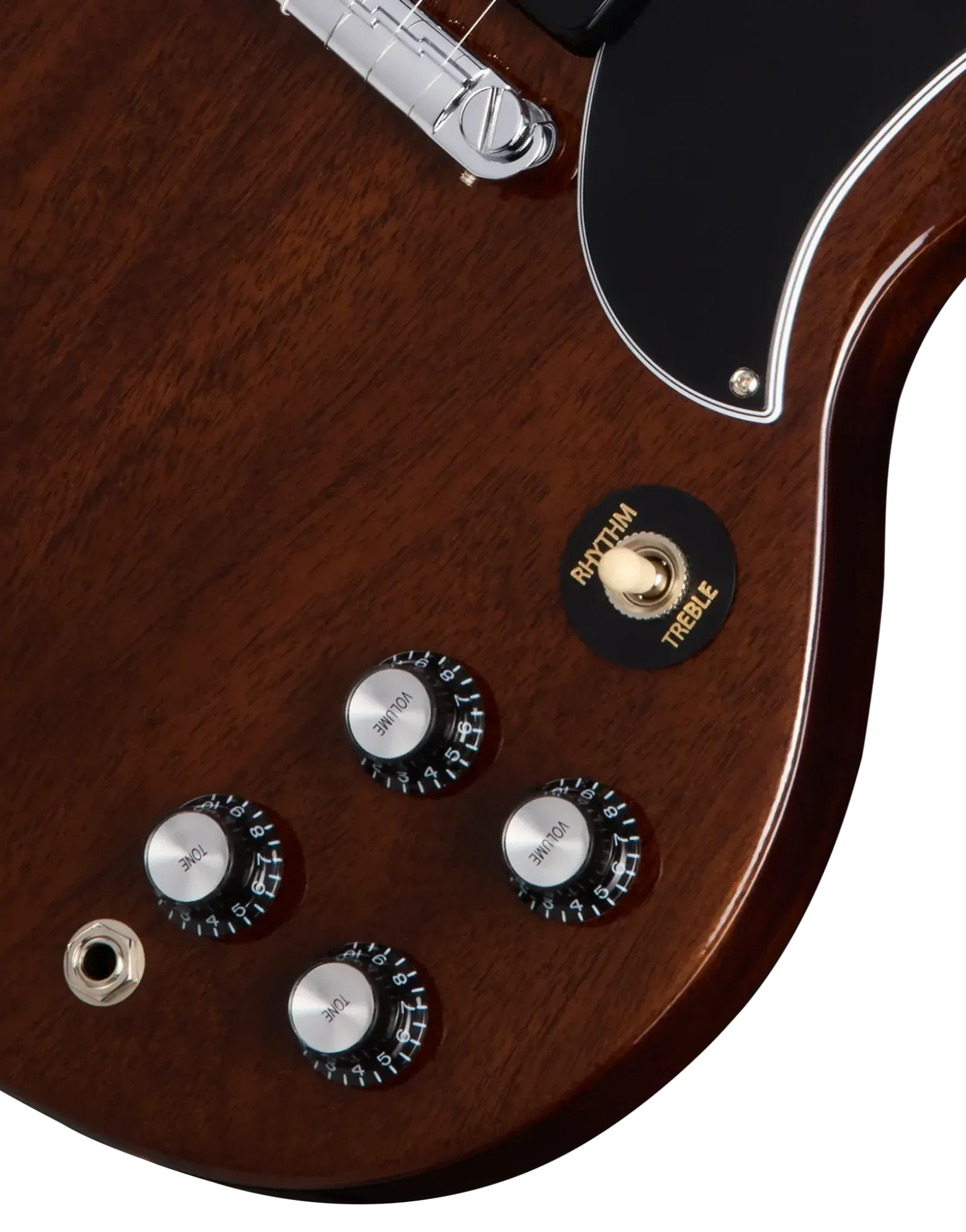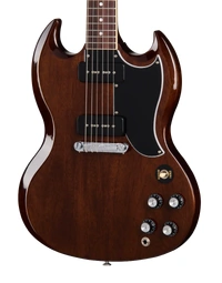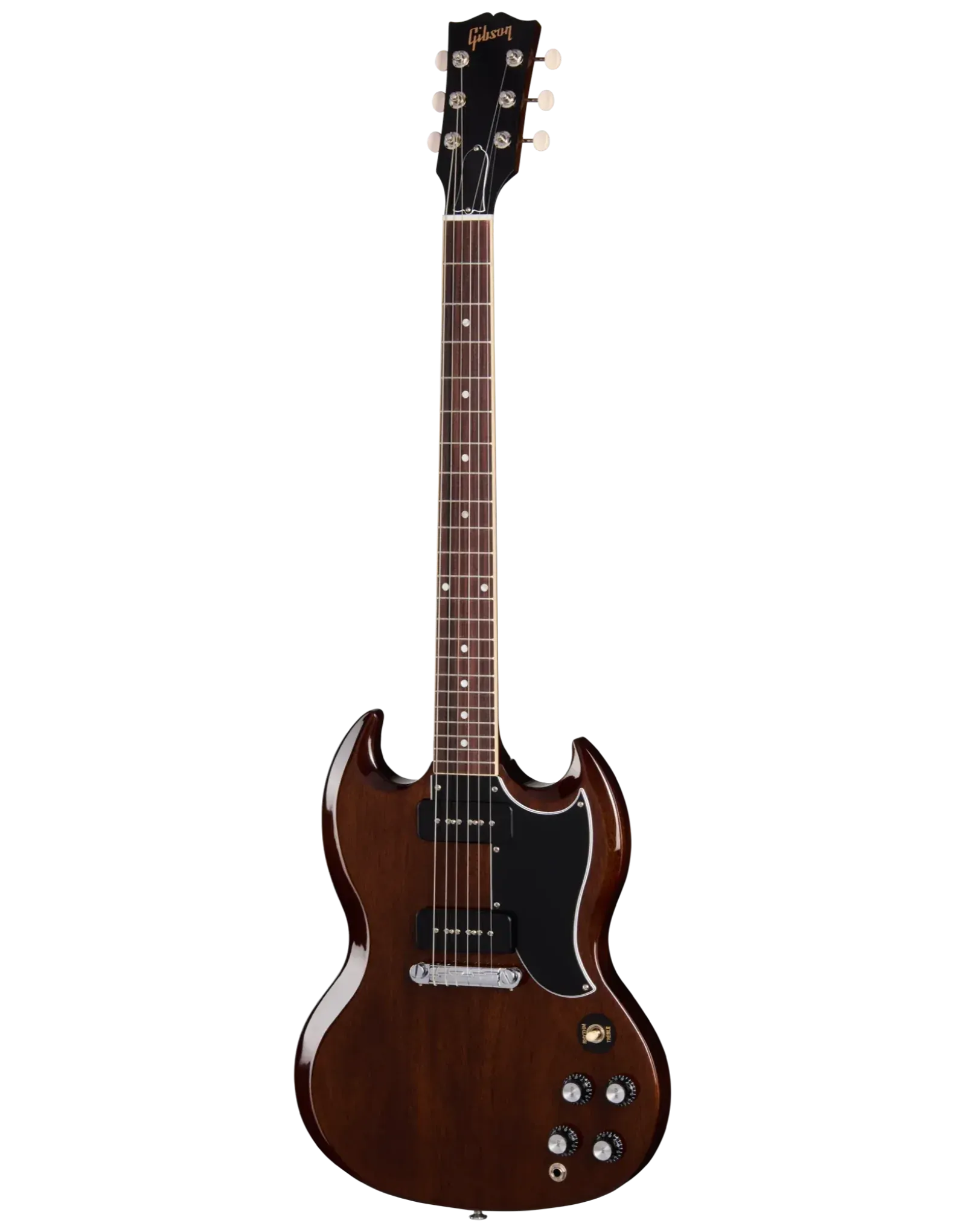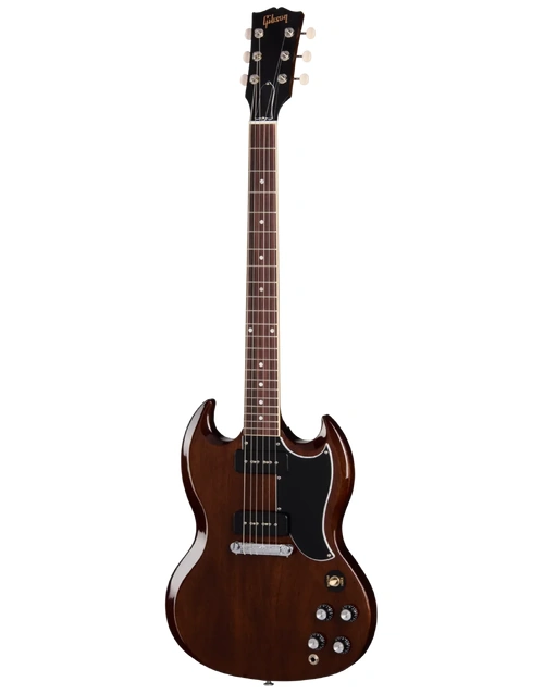 The Gibson SG Special Hand-Picked Dark Walnut is a modern take on one of Gibson’s most iconic models, delivering raw P-90 power with classic styling. Its lightweight, contoured mahogany body and SlimTaper mahogany neck offer outstanding comfort and playability, while the bound rosewood fretboard with 22 medium-jumbo frets makes both riffs and solos effortless. A pair of soapbar P-90 pickups deliver everything from sparkling cleans to snarling, overdriven rock tones, with hand-wired electronics and Orange Drop capacitors ensuring precise, reliable performance. The compensated wraparound bridge adds excellent intonation and sustain, and the vintage deluxe tuners with white buttons keep the look authentically vintage. Finished in a rich Dark Walnut gloss nitrocellulose lacquer, this SG Special looks as good as it sounds. At Riffs & Licks Music, we think this guitar is perfect for players who want a stripped-down, tone-first SG with timeless rock-and-roll attitude.