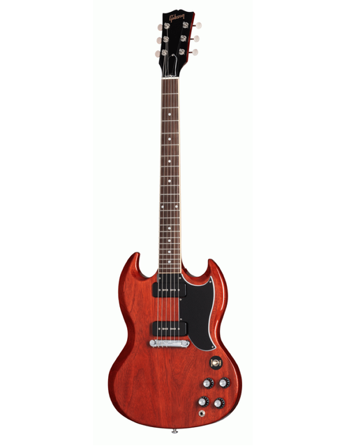 The SG Special returns to the classic design that made it relevant, played and loved - shaping sound across generations and genres of music. This early 60's style SG Special has the vibe and tone heard on countless classic rock recordings. The comfortable, slim taper Mahogany neck and bound Rosewood fingerboard is well known for fast, effortless playing. The two P-90 pickups are noted for their fat snarl when driven and their smooth sweetness when played clean. The SG Special is equipped with a 3-way toggle switch, handwired controls and orange drop capacitors. A hardshell case is included.
