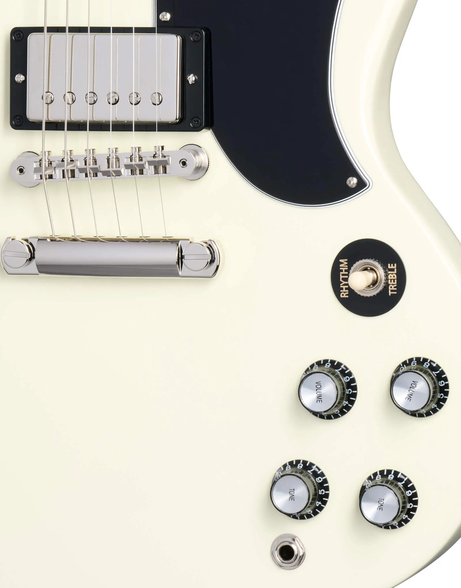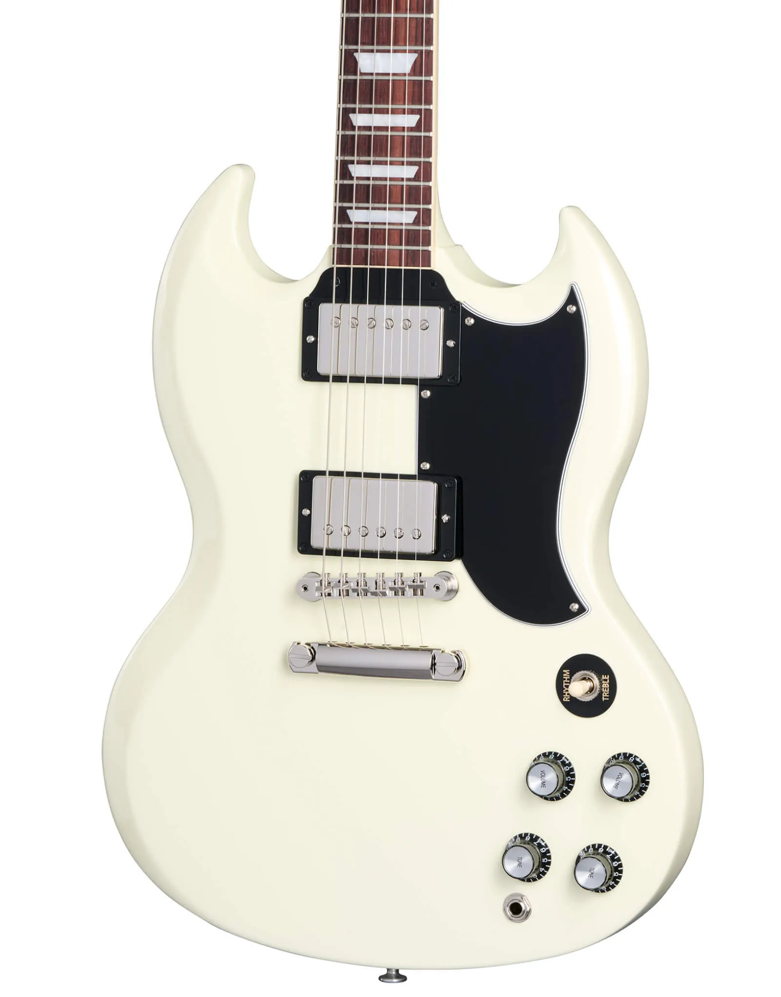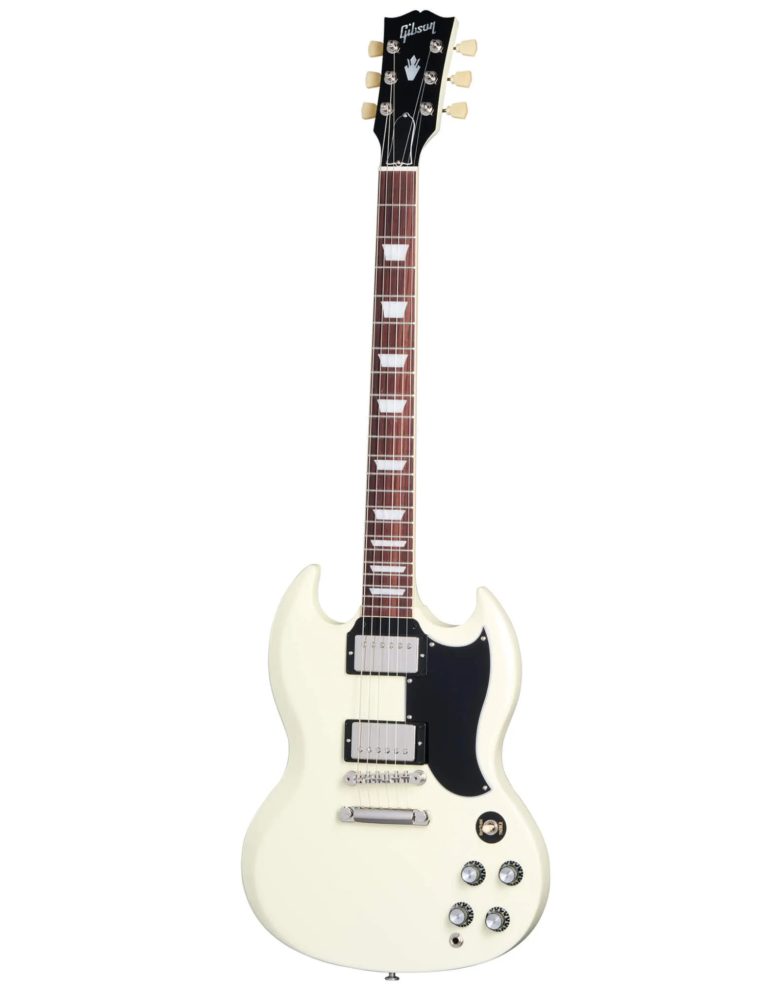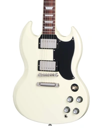 Presenting the Gibson SG Standard '61 Custom Colours Edition in Classic White - a revival of the iconic '61 design that has shaped the sound of countless genres across countless generations. This classic is now available in custom colours, adding a new dimension to its timeless appeal. The SG Standard '61 features a SlimTaper mahogany neck and a bound rosewood fingerboard, ensuring a comfortable and smooth playing experience. The mahogany body is adorned with deeply sculpted body scarfing, a 5-ply teardrop pickguard, and a 22nd-fret neck joint. Equipped with nickel-plated hardware, 60s Burstbucker humbuckers, and audio taper potentiometers, this SG delivers a classic voice with added power and top-end. Complete with a hardshell case, the SG Standard '61 Custom Colours Edition is a true testament to Gibson's timeless craftsmanship.