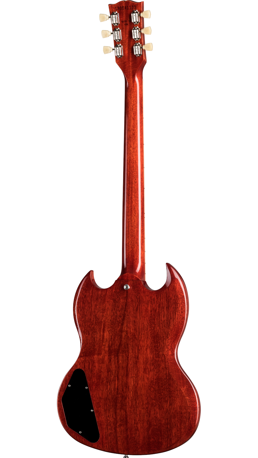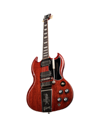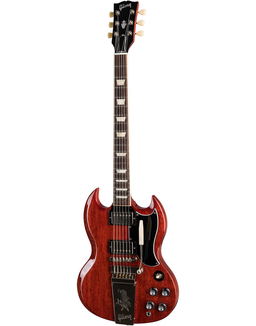 The SG Standard ‘61 Maestro Vibrola returns to the classic design that made it relevant, played and loved -- shaping sound across generations and genres of music. As the name implies, the Gibson SG Standard '61 Maestro Vibrola adds vibrato capability to the SG Standard '61. The Maestro Vibrola offers smooth vibrato effects and the classic styling of the Lyre engraving on the tailpiece cover. Standard features include a slim taper mahogany neck and a bound rosewood fingerboard. The mahogany body features a deeply sculpted body scarfing, a 5-ply teardrop pickguard and a 22nd-fret neck joint. The nickel plated hardware includes a classic-style Tune-O-Matic bridge and keystone tuners in addition to the Maestro Vibrola Tailpiece. The pickups are 61R and 61T humbuckers for a classic voice with added power and top end. Controls feature audio taper potentiometers and orange drop capacitors.