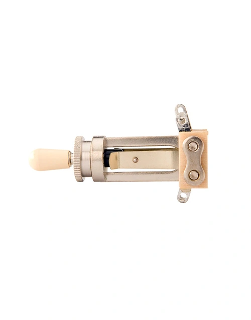 An original Gibson OEM replacement or restoration straight-type toggle switch pickup selector designed to fit all vintage and modern day Les Paul Standards and Studios. Comes with a crème switch cap.