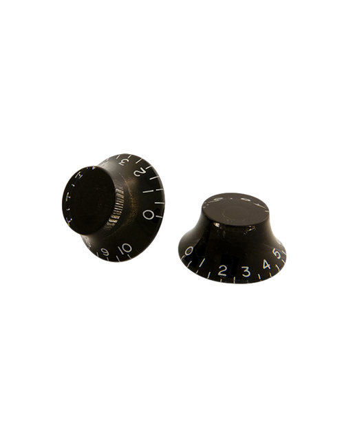 These genuine Gibson OEM top hat style knobs are the same knobs found on many vintage and current Gibson guitars, and can be used for vintage restoration or the replacement of lost knobs. Gibson top hat knobs come packaged in sets of four, and are available in either black, gold, or vintage amber, all with white numbers.