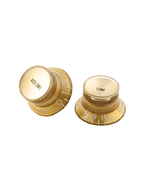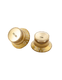These genuine Gibson OEM top hat style knobs are the same knobs found on many Gibson SG models, but can also be used for any vintage restoration project, changing your guitar’s look, or for the replacement of lost knobs. These black Gibson top hat style knobs with silver metal inserts come packaged in sets of four: two volume and two tone.