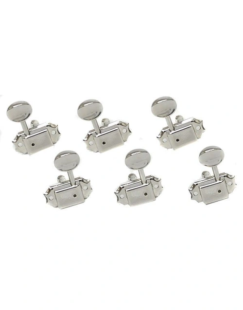 Set of 6 Kluson style machine heads in Nickel finish. 3 a side. Small button "05".