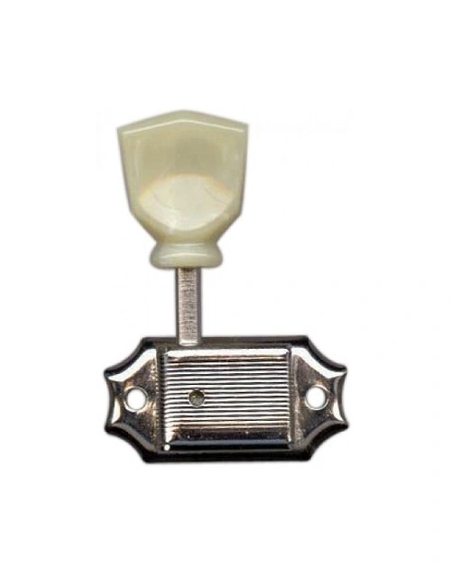 Set of 6 Vintage style machine heads in Nickel finish with green resin button. 3 a side.