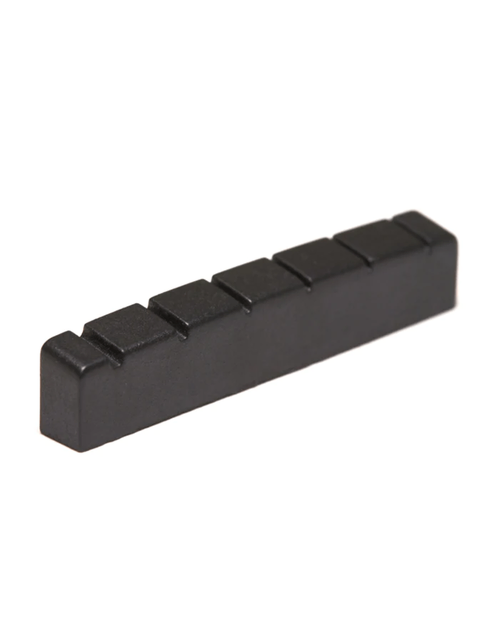 The Graph Tech Black Jumbo Acoustic Nut Left-Handed is a great option to upgrade the nut on your left handed Gibson USA guitar, or similar guitars. It has a flat bottom and is pre-slotted for a quick and simple install.