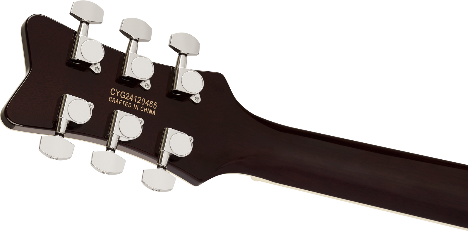 The Gretsch Electromatic CVT Double-Cut with Wraparound bridge is a bold, modern reimagining of a cult classic. Its solid mahogany body features sleek beveled contours, matched with a bolt-on mahogany neck and a comfortable Performance “C” profile for smooth playability. A pair of Twin Six humbuckers deliver full-bodied, punchy tones with great clarity, making this an ideal guitar for rock, punk or anything in between. With a 24.6" scale, wraparound bridge, and Graph Tech NuBone nut, this CVT is built for reliable performance and striking looks.
