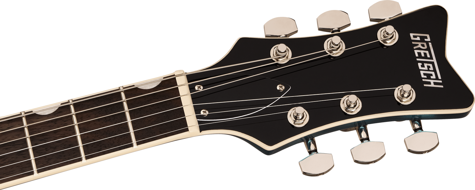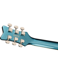 The Gretsch Electromatic Jet Club RW Riviera Blue delivers pure Gretsch tone, style, and playability in a sleek, modern package. Its chambered mahogany body enhances resonance while keeping the guitar lightweight and responsive, and the sculpted contours with a rounded heel ensure supreme comfort. The Performance “C” neck profile and bound rosewood fingerboard with pearloid Neo Classic inlays offer effortless playability. Dual PureVolt Twin Six humbuckers provide a wide tonal range—from shimmering clarity to full-bodied overdrive—while the GraphTech NuBone nut and Lockdown wraparound bridge deliver stable tuning and sustain. Finished in stunning high-gloss Riviera Blue, this Jet Club is both refined and ready to rock.