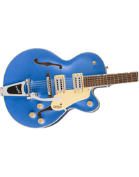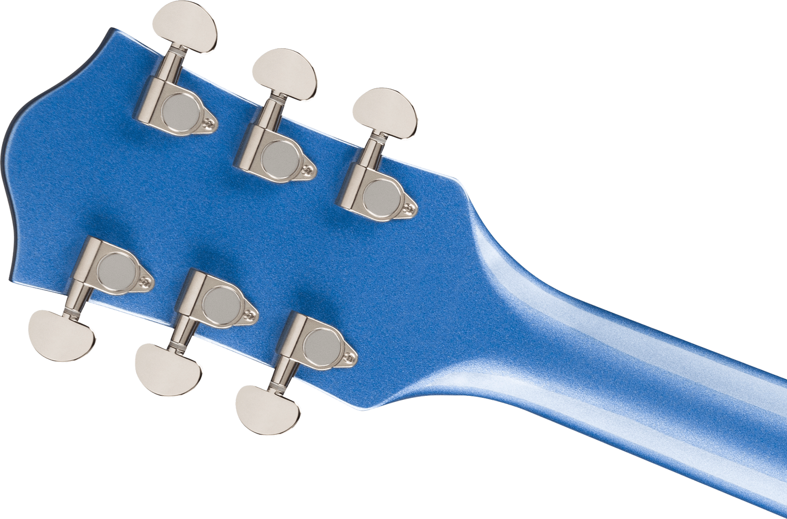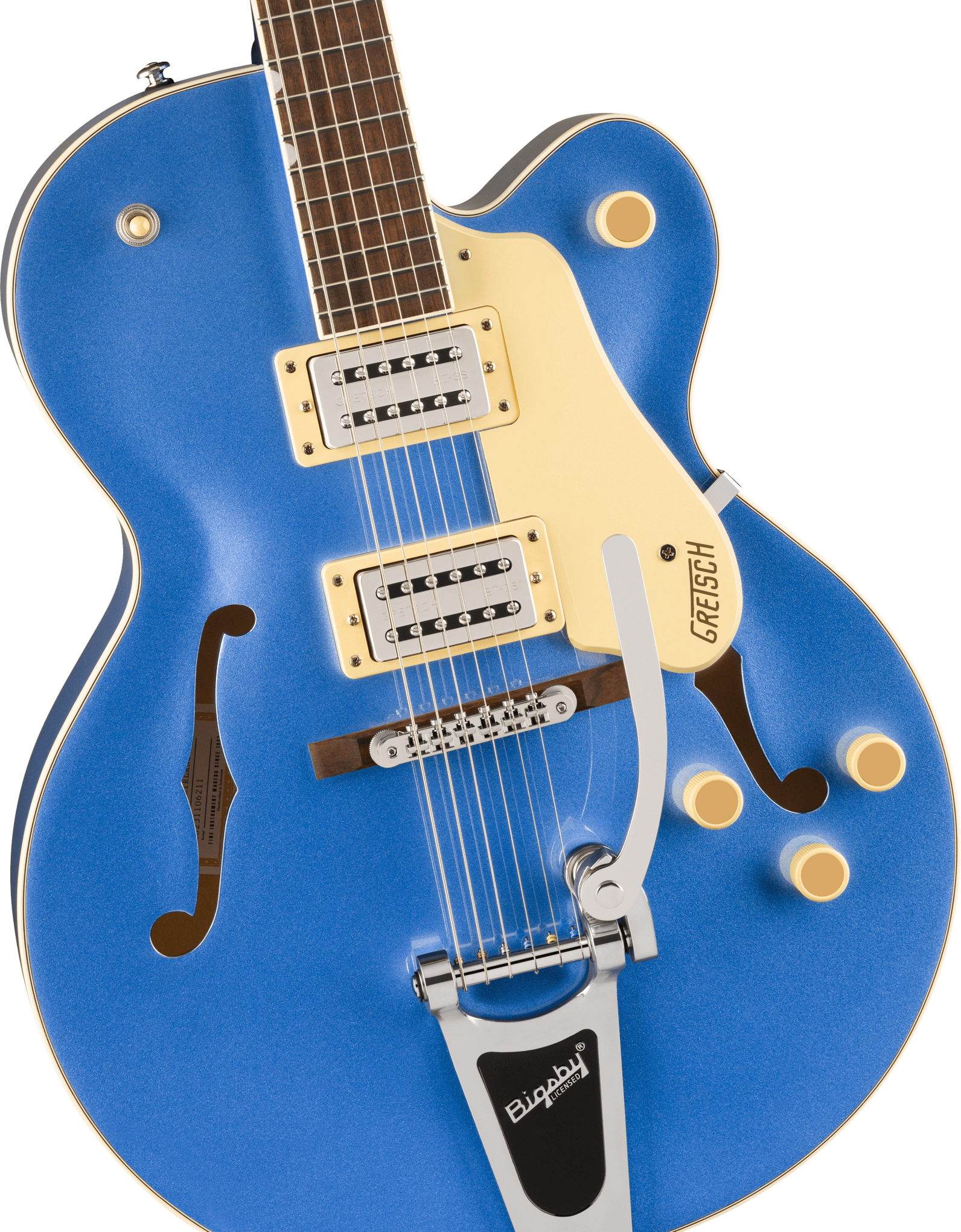 The soft “C” nato neck and 12" radius fingerboard provide a comfortable, easy-playing feel, while the Bigsby B60 vibrato adds subtle movement and character to chords and lead lines. Finished with classic Gretsch styling and distinctive Fairlane Blue colour, it balances vintage appeal with practical versatility.