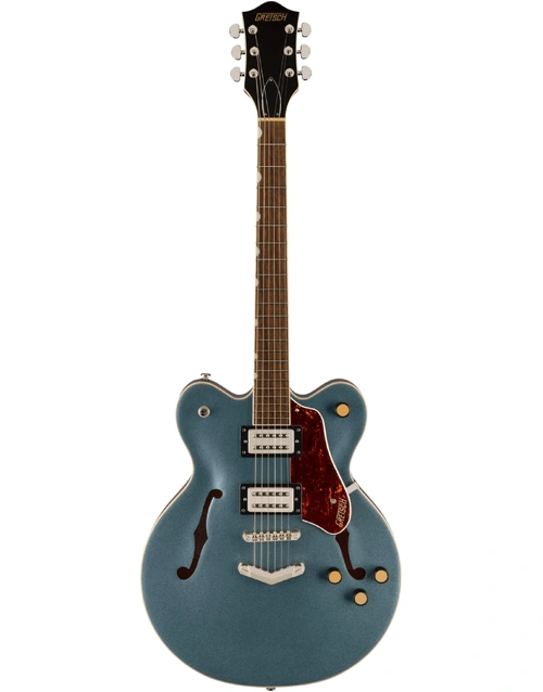 Whether you're shredding on stage or crafting soulful melodies in the studio, the G2622 offers incredible tone-shaping versatility. The master volume and tone controls, along with individual pickup volume knobs and a push/pull coil-splitting feature on the master volume, ensure you have complete control over your sound. The G2622's laurel fingerboard with pearloid Neo Classic thumbnail inlays and a tortoise pickguard exudes timeless elegance. With its sturdy construction, anchored Adjusto-Matic bridge, and Gretsch V-Stop tailpiece, this guitar is built to withstand the rigors of the road while maintaining impeccable playability and tonal integrity.