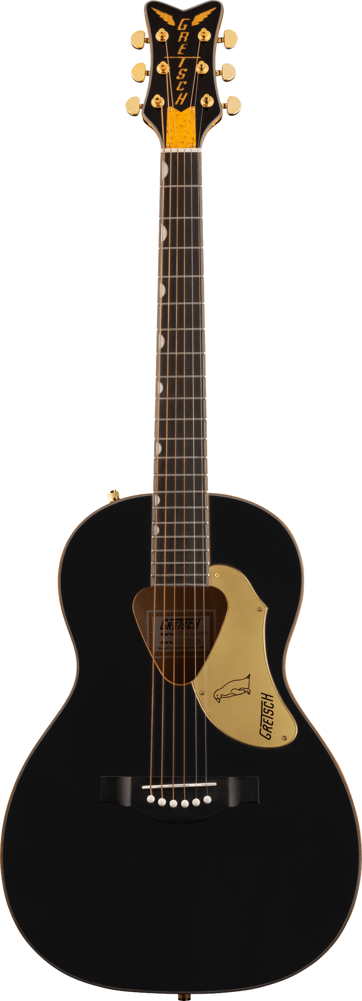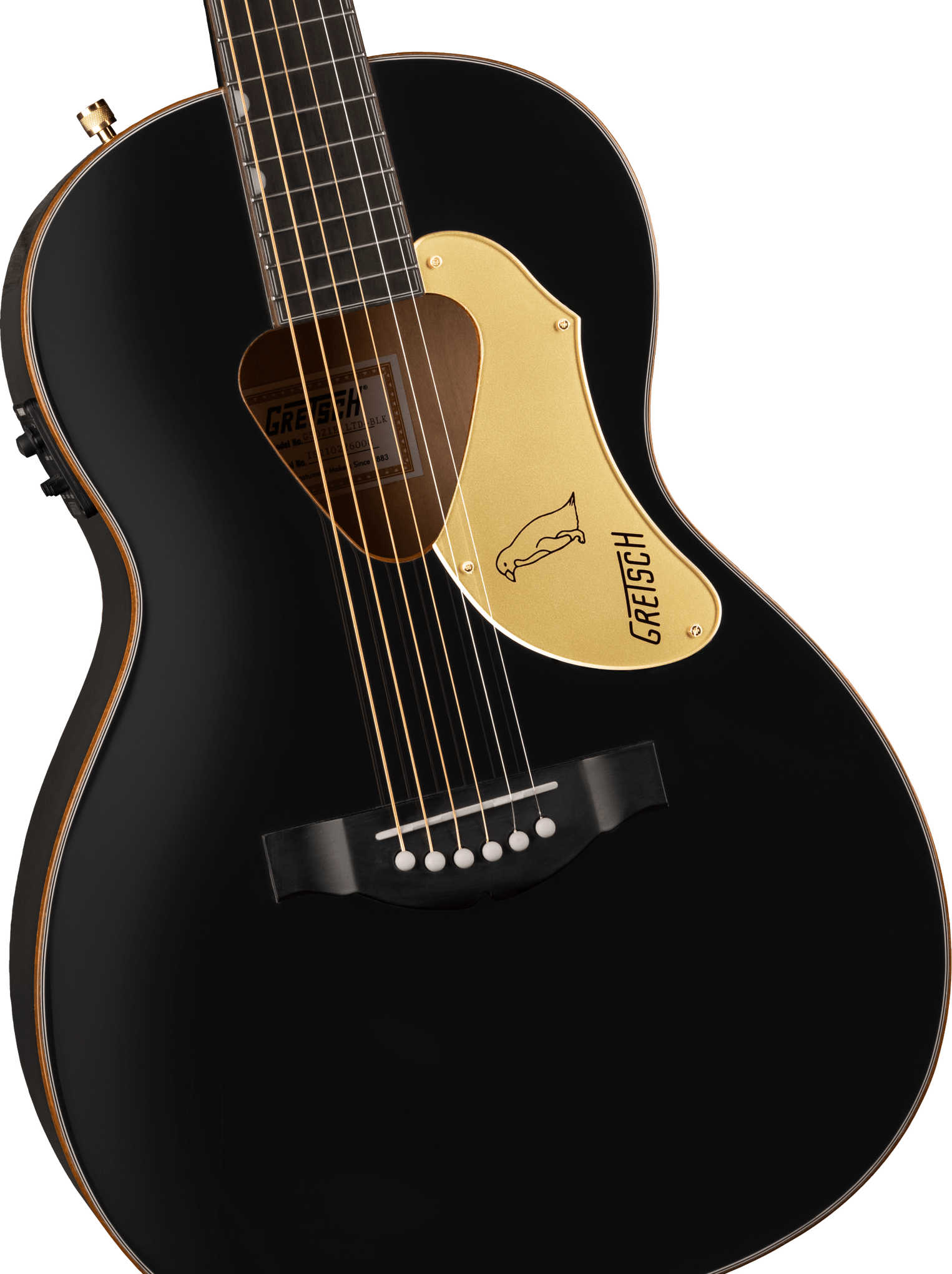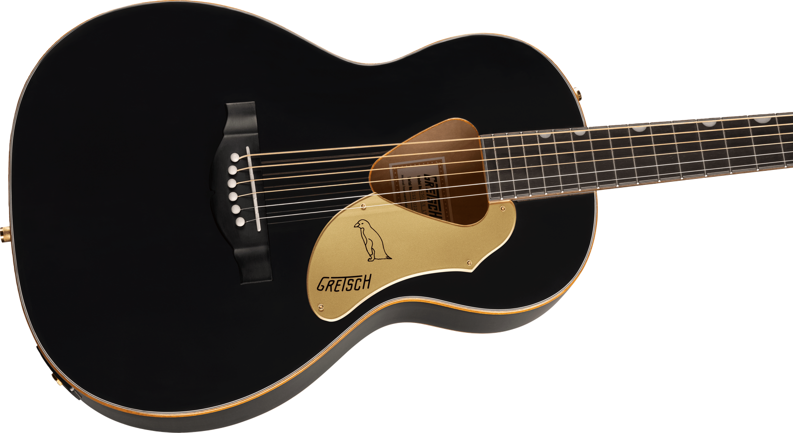 | Pickguard | Gold Plexi with Black Penguin Graphic and Gretsch Logo |