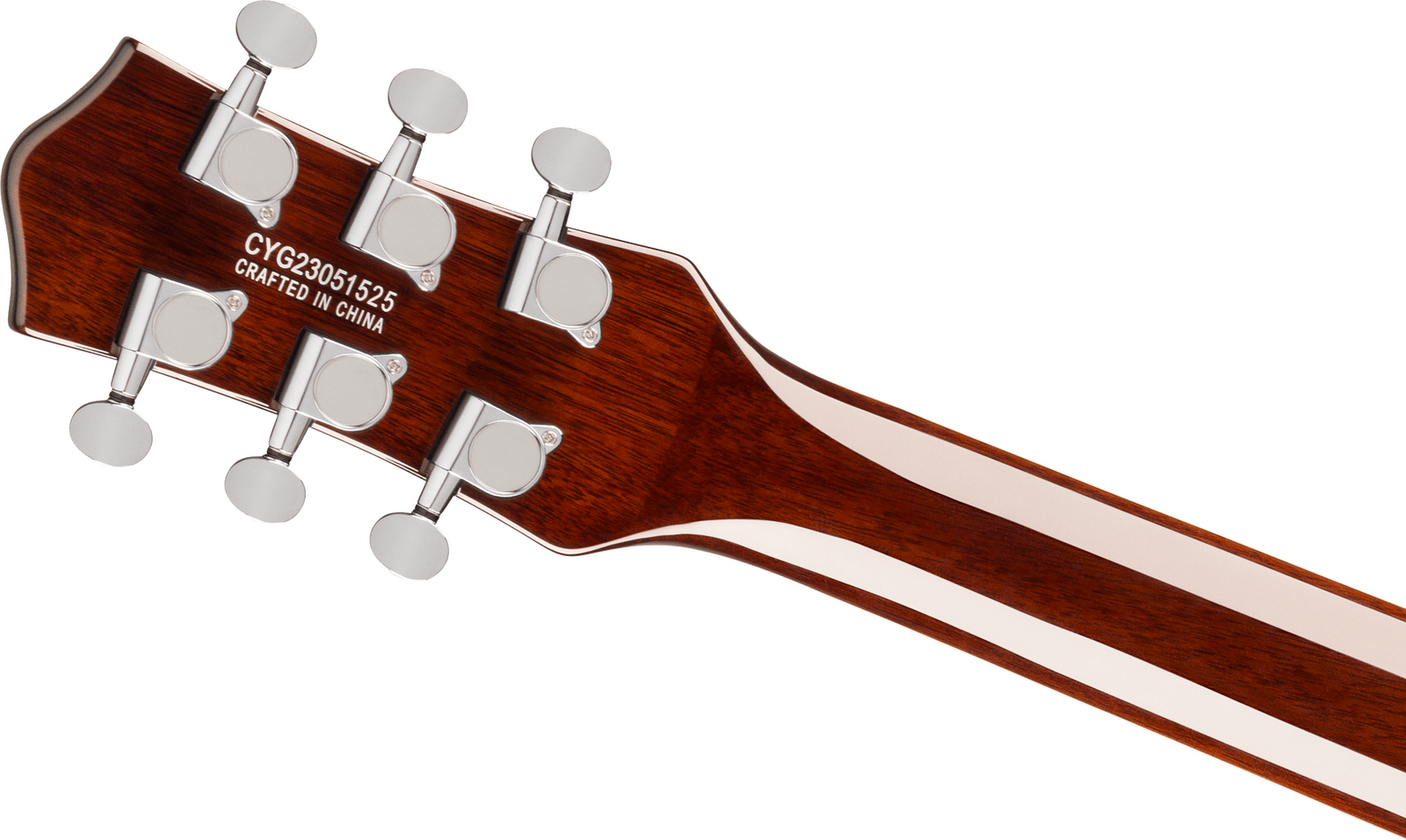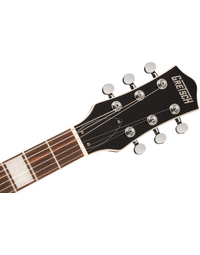 The Gretsch G5220 Electromatic Jet BT combines classic Jet design with modern power and clarity. Its chambered mahogany body with a maple top delivers a rich midrange, deep lows, and sparkling highs. The Black Top Broad'Tron pickups provide thick, aggressive overdrive while maintaining excellent note definition, making it versatile for clean tones as well. A lower-set mahogany neck ensures smooth access to higher frets, while the 12” radius laurel fingerboard with 22 medium jumbo frets offers a comfortable playing experience. The master volume control with a treble bleed circuit, along with individual pickup volume and tone controls, gives complete tonal flexibility. Anchored by an Adjusto-Matic bridge and V-Stoptail, this guitar delivers stable tuning and sustain. Finished in Olive Metallic, it exudes classic Gretsch style with a modern edge.