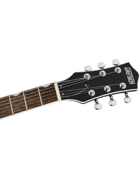 The Gretsch G5230T Electromatic Sparkle Jet FT Single-Cut w/ Bigsby LRL Silver Sparkle offers a bold, dynamic sound and striking style in a powerful, no-nonsense package. With a chambered mahogany body and maple top, this guitar provides a strong sonic profile and exceptional acoustic balance, delivering that unmistakable "Jet" sound. The lower set mahogany neck ensures effortless access and playability, while the 12"-radius laurel fingerboard with Neo-Classic thumbnail inlays and 22 medium jumbo frets provide smooth navigation. Featuring FT-5E Filter'Tron humbucking pickups, this guitar produces rich and articulate tones. The master volume, master tone, and individual pickup volume controls offer comprehensive tone-shaping flexibility, and the push/pull coil-splitting on the master volume provides added tonal versatility. Equipped with a Bigsby B50 vibrato tailpiece and anchored Adjusto-Matic bridge, the G5230T stays in tune even during intense performances. With a silver plexi pickguard and chrome hardware, this limited edition guitar is available in an eye-catching Silver Sparkle finish. At Riffs & Licks Music, we think this guitar is ideal for players seeking pure Gretsch sound and modern performance with classic style.