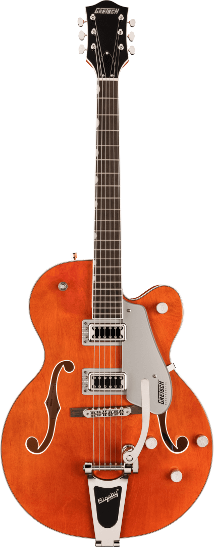 Electromatics are the definition of the kind of perfect, no-nonsense, power that Gretsch are known for. Providing you with that essential Gretsch sound, style and playability, the Gretsch G5420T Electromatic Classic Hollow Body Single-Cut w/ Bigsby LRL, finished in Orange Stain, is bold, dynamic and articulate. The resonance of this fully hollow build explodes through a pair of Filter'Trons. When combined with a Bigsby B60 vibrato, you can feel the electrifying authenticity that has always set Gretsch apart as the quintessential rock 'n' roll guitar.