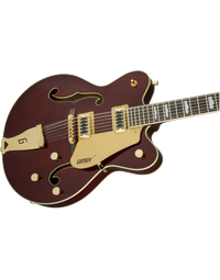 Premium features include dual FT-5E Filter’Tron humbucking pickups, gold hardware, versatile upgraded controls including master volume treble bleed circuit, oversized bound F-holes and aged multi-ply body binding, smaller late-'50s G6120 bound headstock, Graph Tech NuBone nut, pearloid Hump Block fingerboard inlays and a gold Gretsch G-cutout tailpiece.