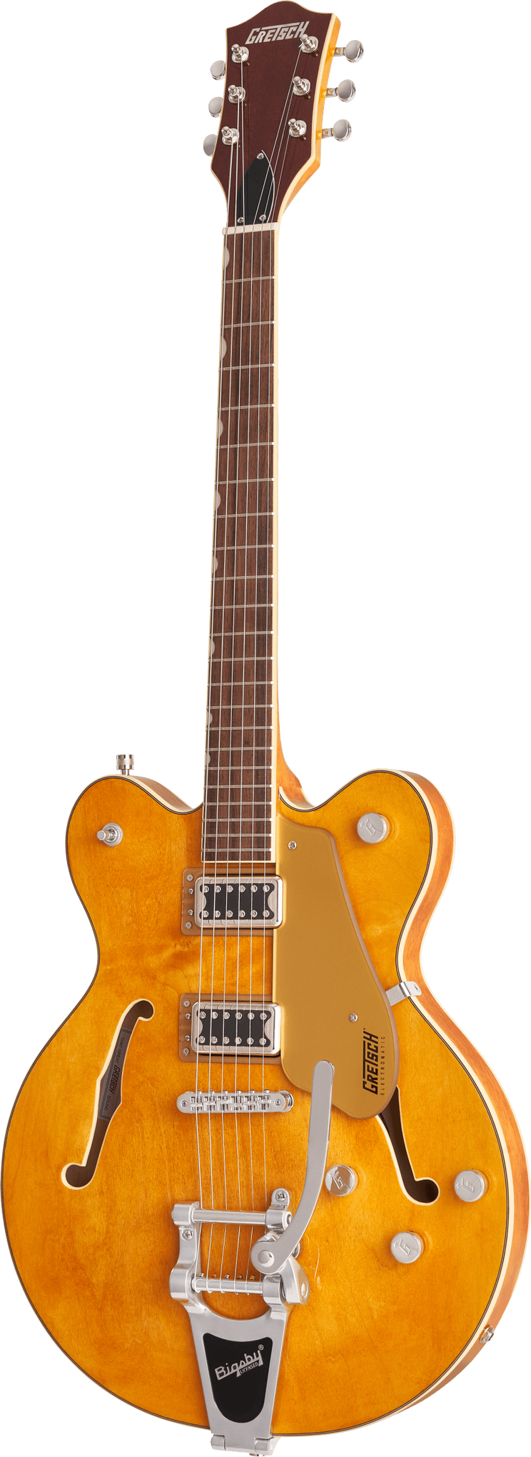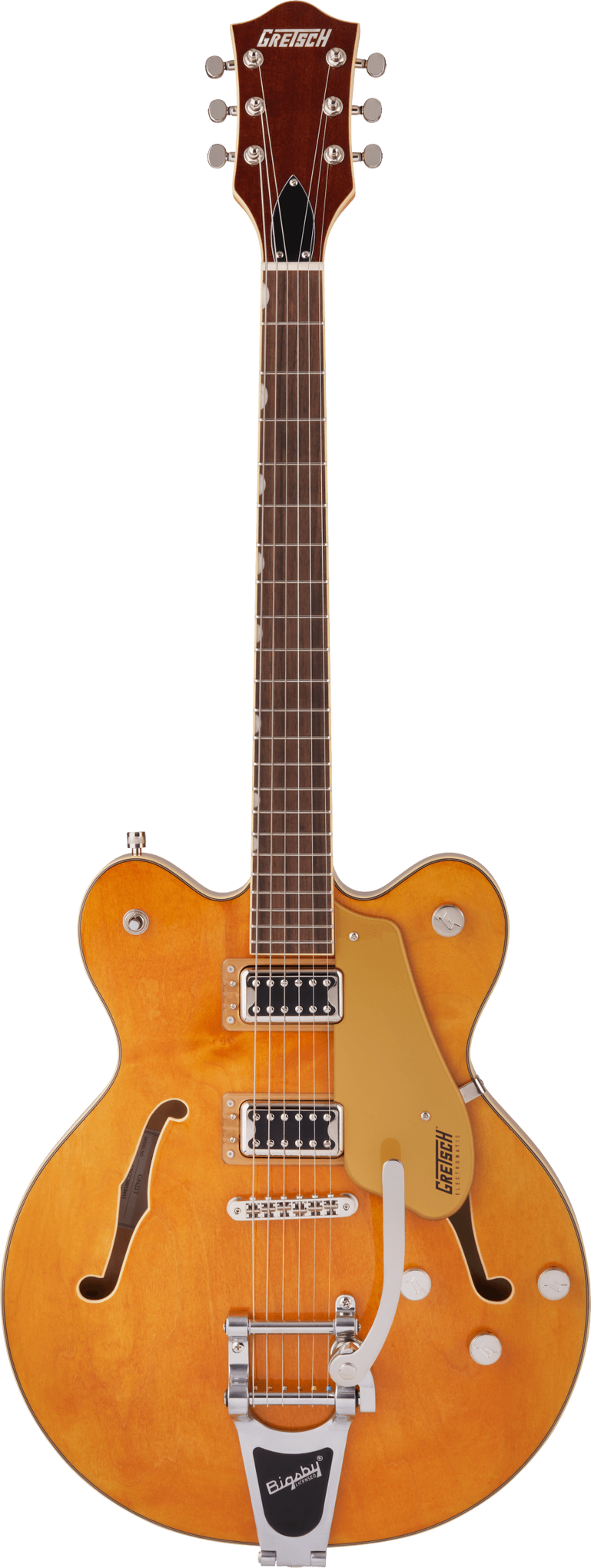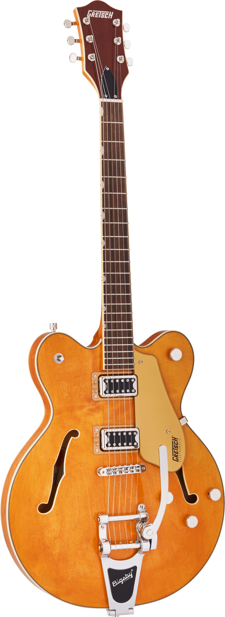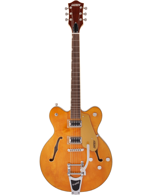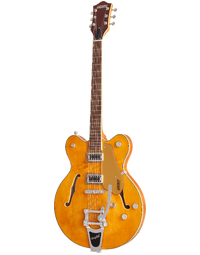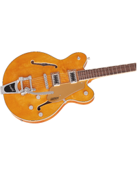 The G5622T also features a versatile control set up, with a three-way toggle switch, bridge and neck volumes, master tone, and master volume with a treble bleed circuit. The G5622T also features some classic Gretsch finishes, such as Speyside, which are complemented perfectly by nickel hardware, gold pickup bezels, a gold pickguard, and aged white binding with multi-ply purfling. Also included are G-arrow knobs, Graph Tech NuBone nut, an anchored Adjusto-Matic bridge, a Bigsby B70 vibrato tailpiece, a Maple neck, and 22 medium jumbo frets on a Laurel fingerboard.