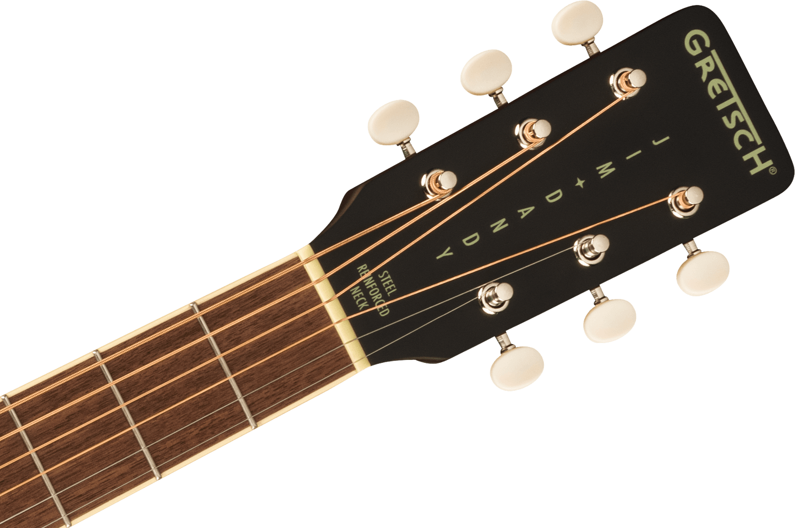 The inviting “C”-shape neck provides hours of old-timey inspiration, complemented by vintage-inspired details such as a vintage-style pinned bridge, “G”-graphic pickguard, painted pinstripe purfling, 3-on-a-plate open-gear tuning machines, and oversized dot fingerboard inlays. This combination of features contributes to its nostalgic personality, making it the perfect companion for barnburners or jamborees.