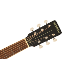 The "C"-shape neck offers an inviting feel, perfect for hours of old-timey inspiration. Vintage-inspired details include a vintage-style pinned bridge, "G"-graphic pickguard, painted pinstripe purfling, 3-on-a-plate open-gear tuning machines, and oversized dot fingerboard inlays, contributing to its nostalgic personality.