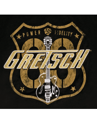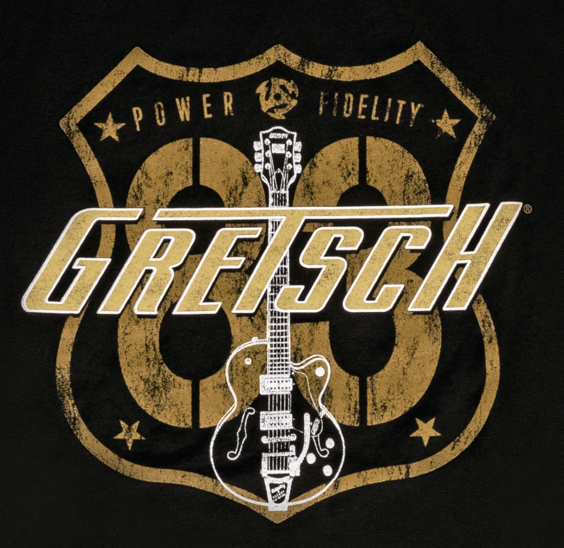 This graphic t-shirt features the Gretsch logo and a route 83 sign. Printed on a highly sought after soft heather shirt, it's perfect for any Gretsch player or fan. Size Medium (M).
