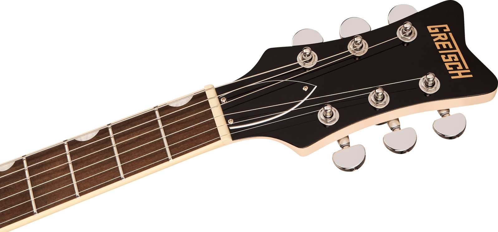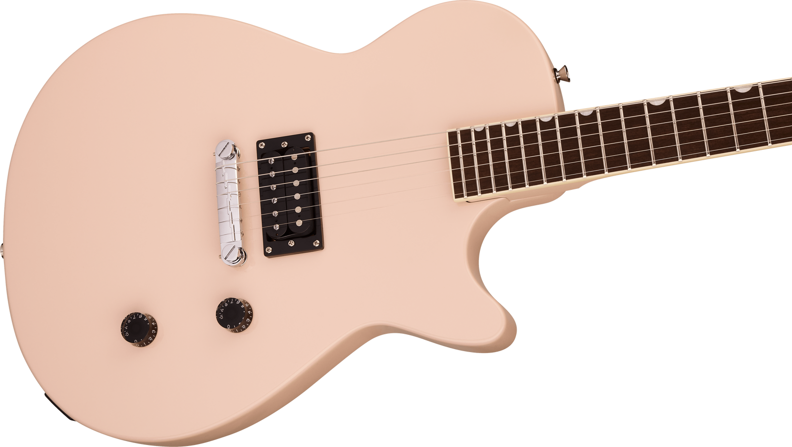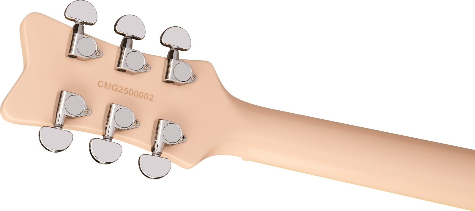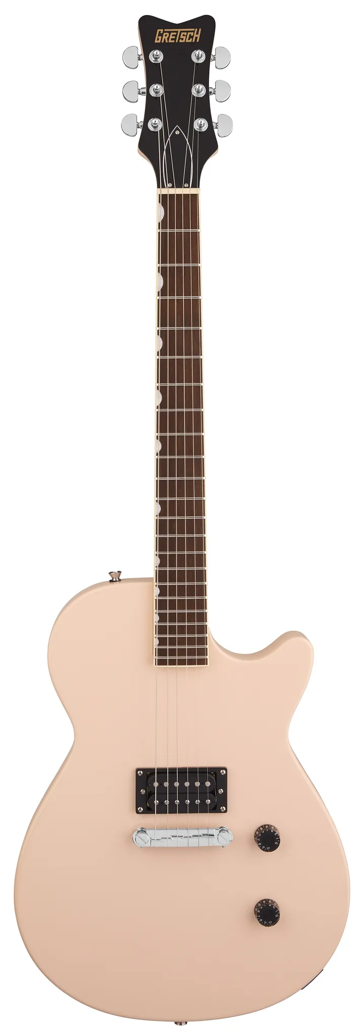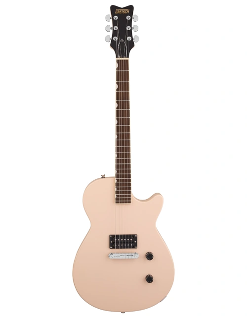 The Gretsch Streamliner Jet Club 1 Pickup in Shell Pink combines timeless looks with focused, powerful tone. Its mahogany body features a belly contour and rounded heel for outstanding comfort and resonance, while the Fast “C” mahogany neck and 12" laurel fingerboard deliver smooth, effortless playability. A single HotWire high-output ceramic humbucker provides crisp, punchy sound with rich midrange and clear articulation—perfect for anything from classic rock to indie pop. With a compensated wraparound bridge, GraphTech NuBone nut, and Pitch-Perfect head angle, tuning stability and sustain are second to none. Finished in stunning Shell Pink with Gretsch’s signature Split-V headstock, this guitar offers style and substance in equal measure.