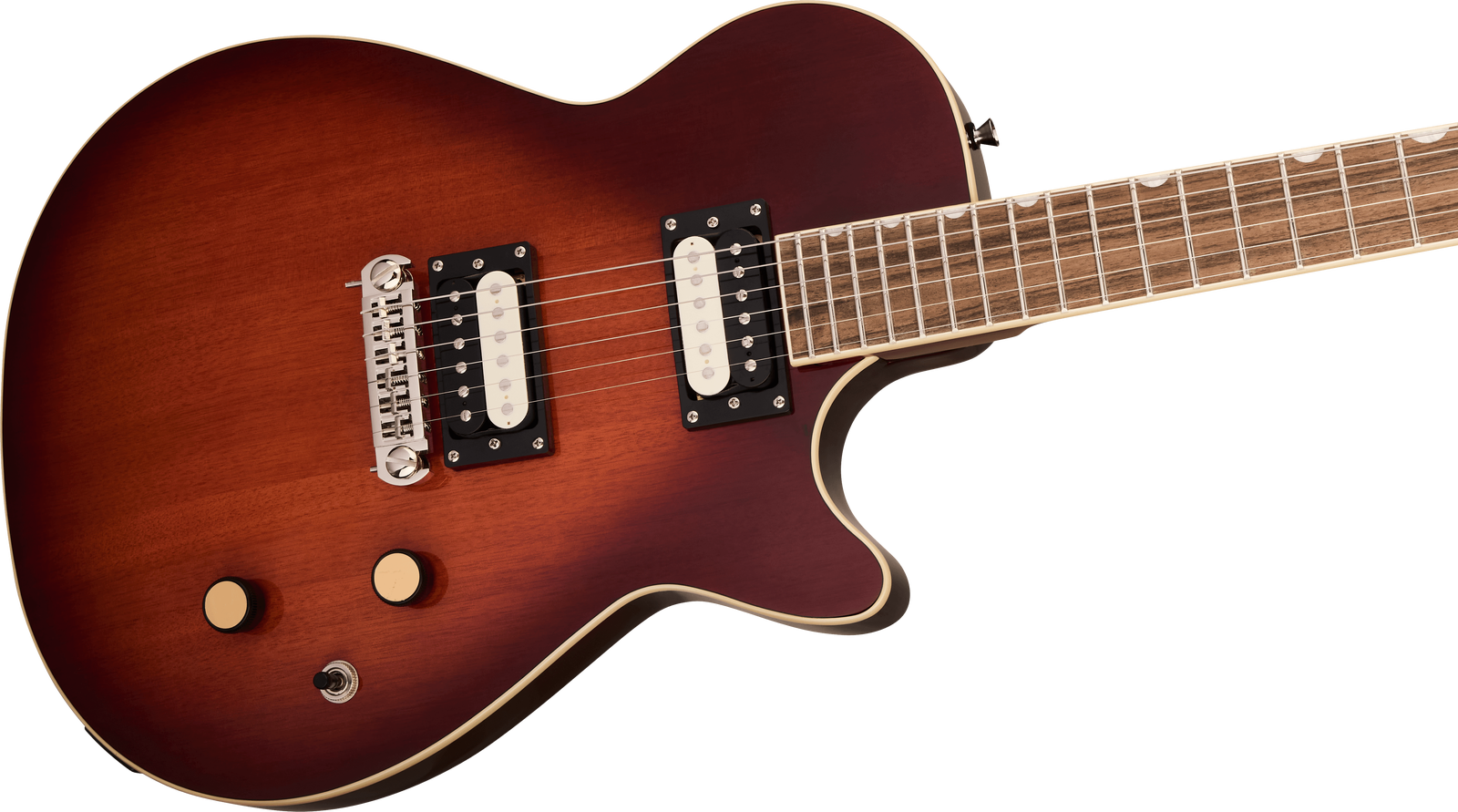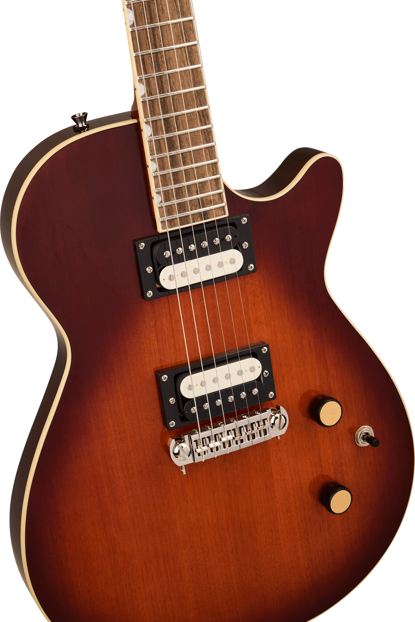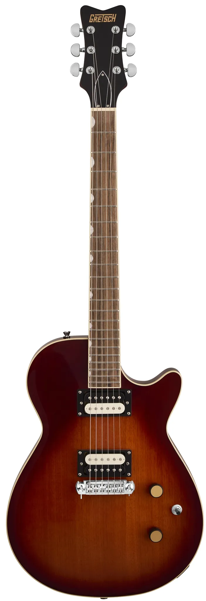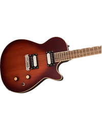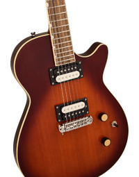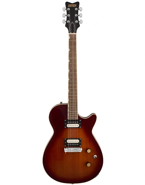 The Gretsch Streamliner Jet in Duo-Tone Burst brings vintage-inspired style and high-output performance to players seeking tone, comfort, and value. Its mahogany body with a bound carved top and belly contour delivers rich sustain and ergonomic comfort, while the Fast “C” mahogany neck and 12" laurel fingerboard offer smooth, effortless playability. Equipped with HotWire ceramic humbuckers, this Jet produces punchy, dynamic tones ideal for rock, blues, and modern genres. A GraphTech NuBone nut, adjustable wraparound bridge, and Pitch-Perfect head angle ensure solid tuning stability. With classic Gretsch detailing—including vintage knurled knobs, pearloid inlays, and a high-gloss finish—the Streamliner Jet combines timeless looks with contemporary performance.