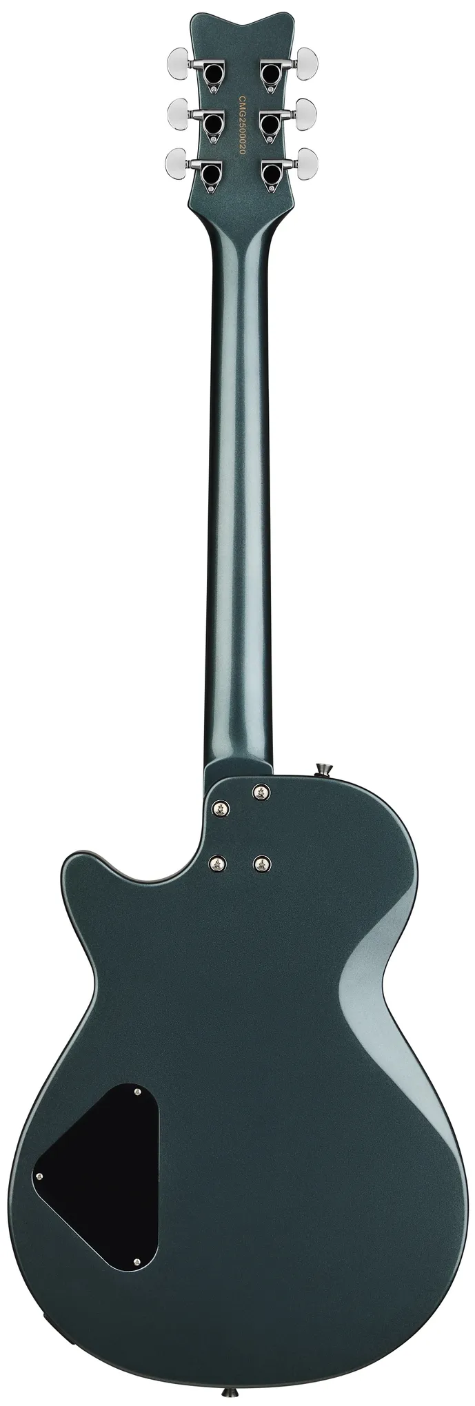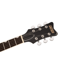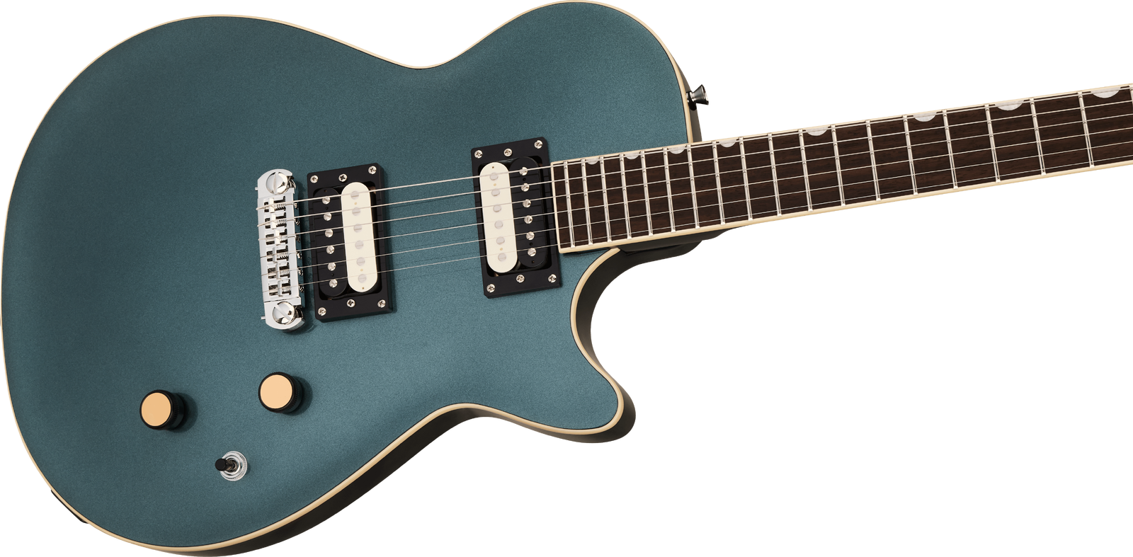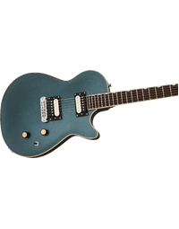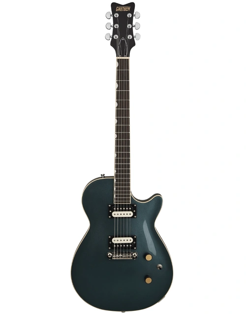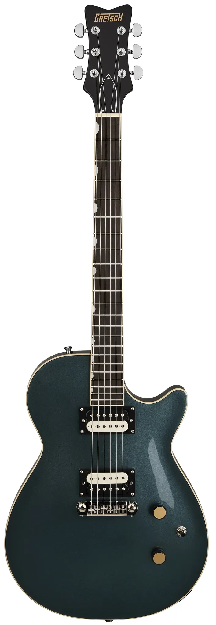 The Gretsch Streamliner Jet in Gunmetal delivers bold, dynamic tone and effortless playability in a sleek, modern package. Built with a mahogany body featuring a bound carved top, belly contour, and rounded heel, it offers rich resonance and exceptional comfort. The Fast “C” mahogany neck and 12" laurel fingerboard make it easy to glide through riffs and solos, while HotWire high-output ceramic humbuckers produce powerful, articulate tones suited for rock, blues, and beyond. A GraphTech NuBone nut, Pitch-Perfect head angle, and adjustable wraparound bridge ensure tuning stability and sustain. Finished in striking Gunmetal with classic Gretsch appointments, the Streamliner Jet looks as good as it sounds.