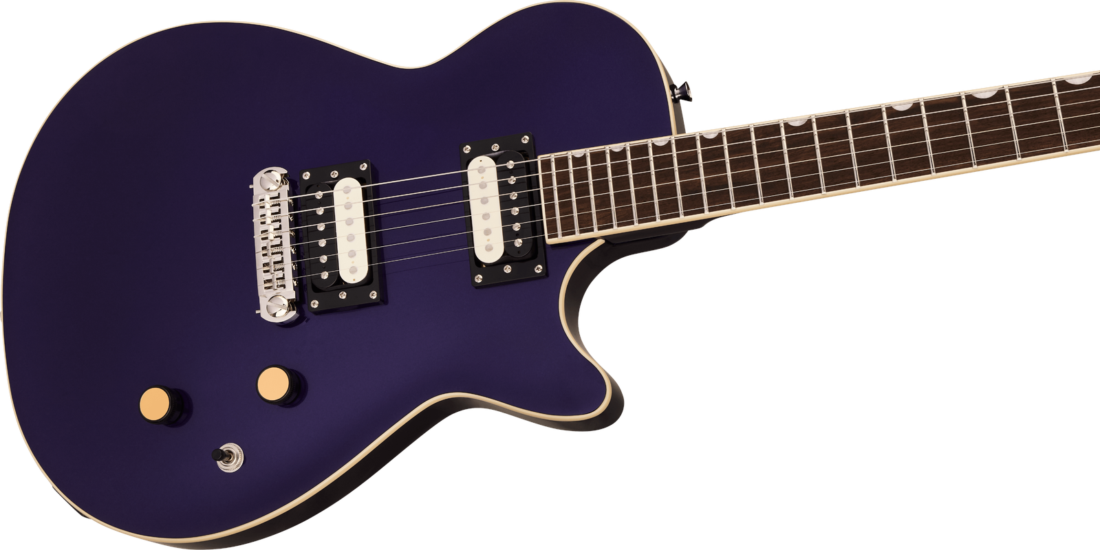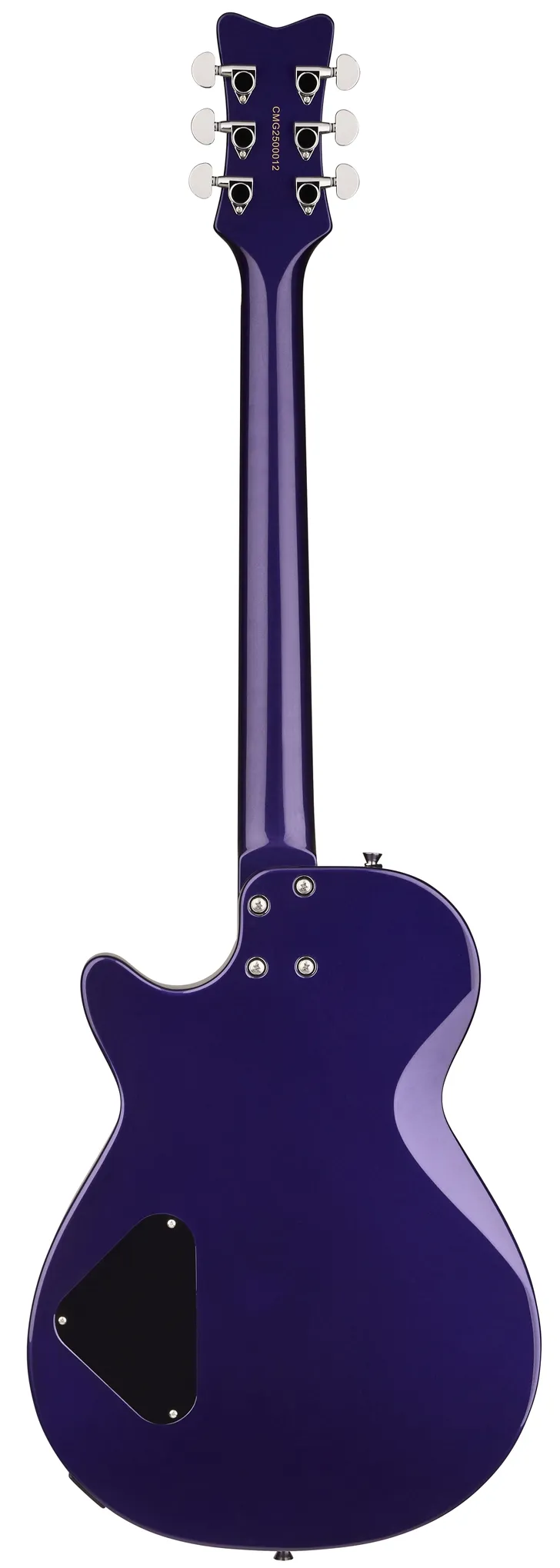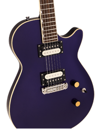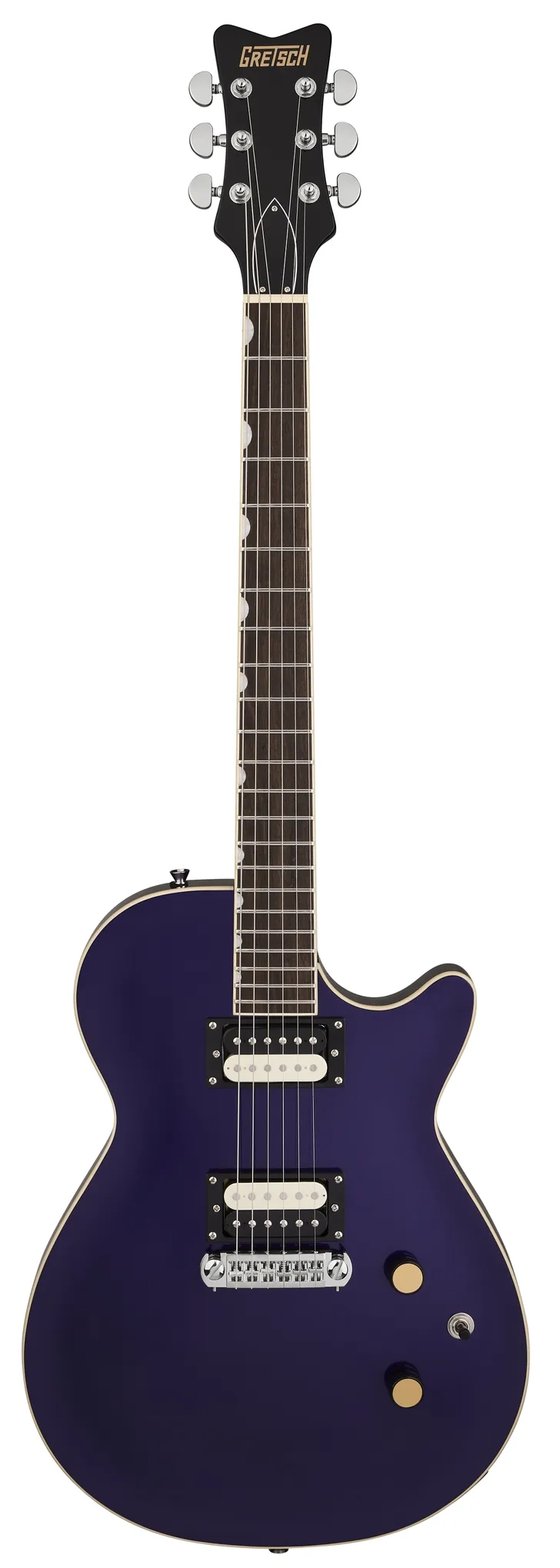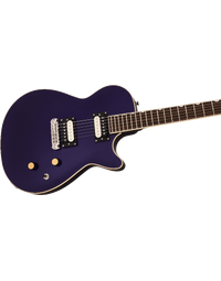 The Gretsch Streamliner Jet in Nightshade Purple fuses classic design with modern tone and playability. Its mahogany body features a bound carved top, belly contour, and rounded heel for excellent comfort and sustain. The Fast “C” mahogany neck and 12" laurel fingerboard with pearloid thumbnail inlays deliver a smooth, responsive feel across all 22 frets. Equipped with HotWire high-output ceramic humbuckers, the Streamliner Jet produces bold, articulate tone with plenty of bite and warmth. The GraphTech NuBone nut, Pitch-Perfect head angle, and adjustable wraparound bridge provide tuning stability and reliability. Finished in striking Nightshade Purple with classic Gretsch flair, this Jet is built to perform and stand out on any stage.