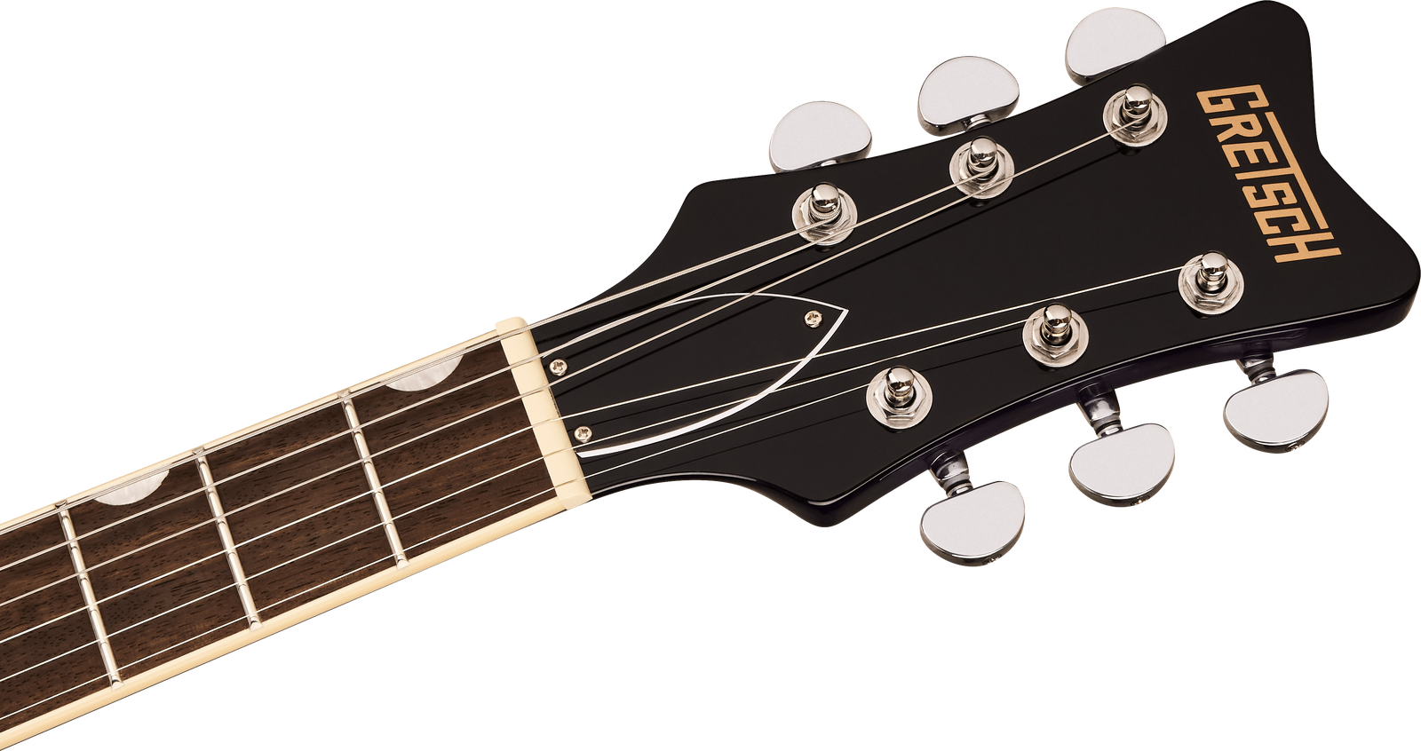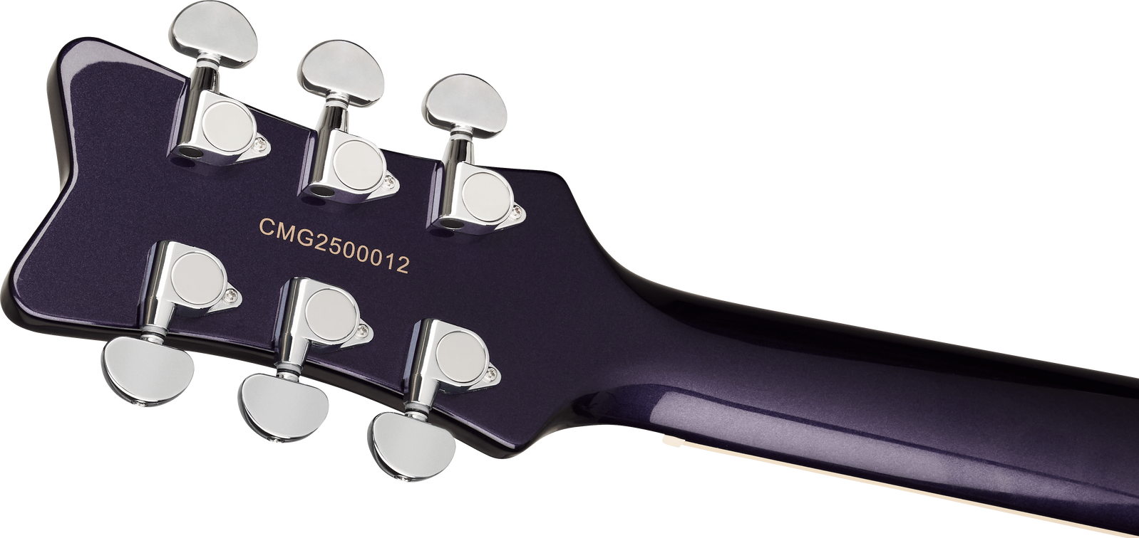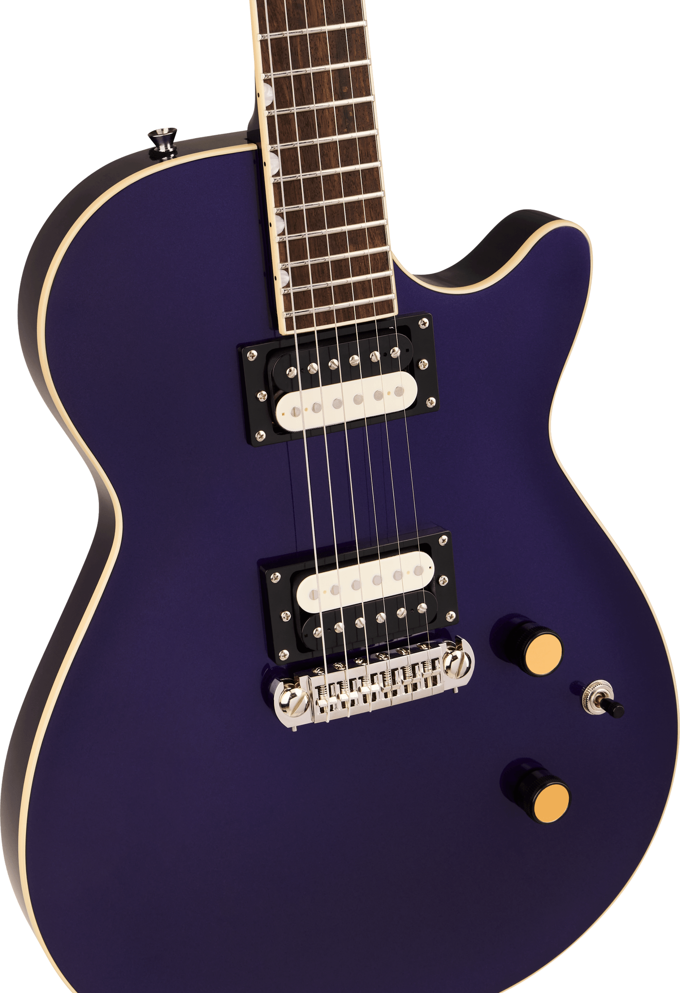 The Gretsch Streamliner Jet in Nightshade Purple fuses classic design with modern tone and playability. Its mahogany body features a bound carved top, belly contour, and rounded heel for excellent comfort and sustain. The Fast “C” mahogany neck and 12" laurel fingerboard with pearloid thumbnail inlays deliver a smooth, responsive feel across all 22 frets. Equipped with HotWire high-output ceramic humbuckers, the Streamliner Jet produces bold, articulate tone with plenty of bite and warmth. The GraphTech NuBone nut, Pitch-Perfect head angle, and adjustable wraparound bridge provide tuning stability and reliability. Finished in striking Nightshade Purple with classic Gretsch flair, this Jet is built to perform and stand out on any stage.