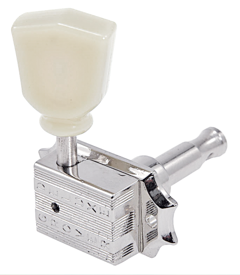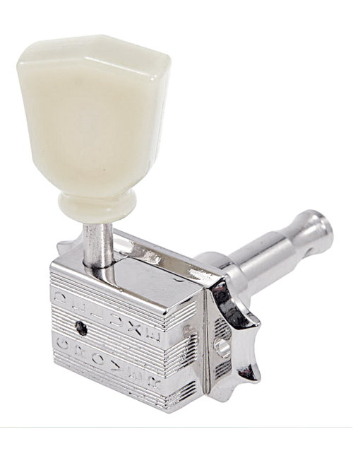 Grover Deluxe Vintage Machineheads, Tulip Pearloid Button, Nickel (Set of 6)