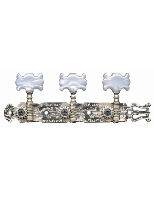 35mm nickel plated. Pearloid butterfly buttons. Engraved plates. 14:1 gear ratio. Plastic coated string posts. 3-a-side. Packaged.