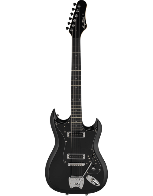 Since its introduction in the '60s, the H-II has been one of Hagstrom's most innovative instruments, inspiring countless professional and aspiring musicians worldwide, especially those in the punk and grunge scenes. Hagstrom H-II Retroscape Guitar in Black Gloss, features the same futuristic design and unique tone-shaping options as the original, with some design improvements which make the H-II feel more comfortable in the hands of modern players.