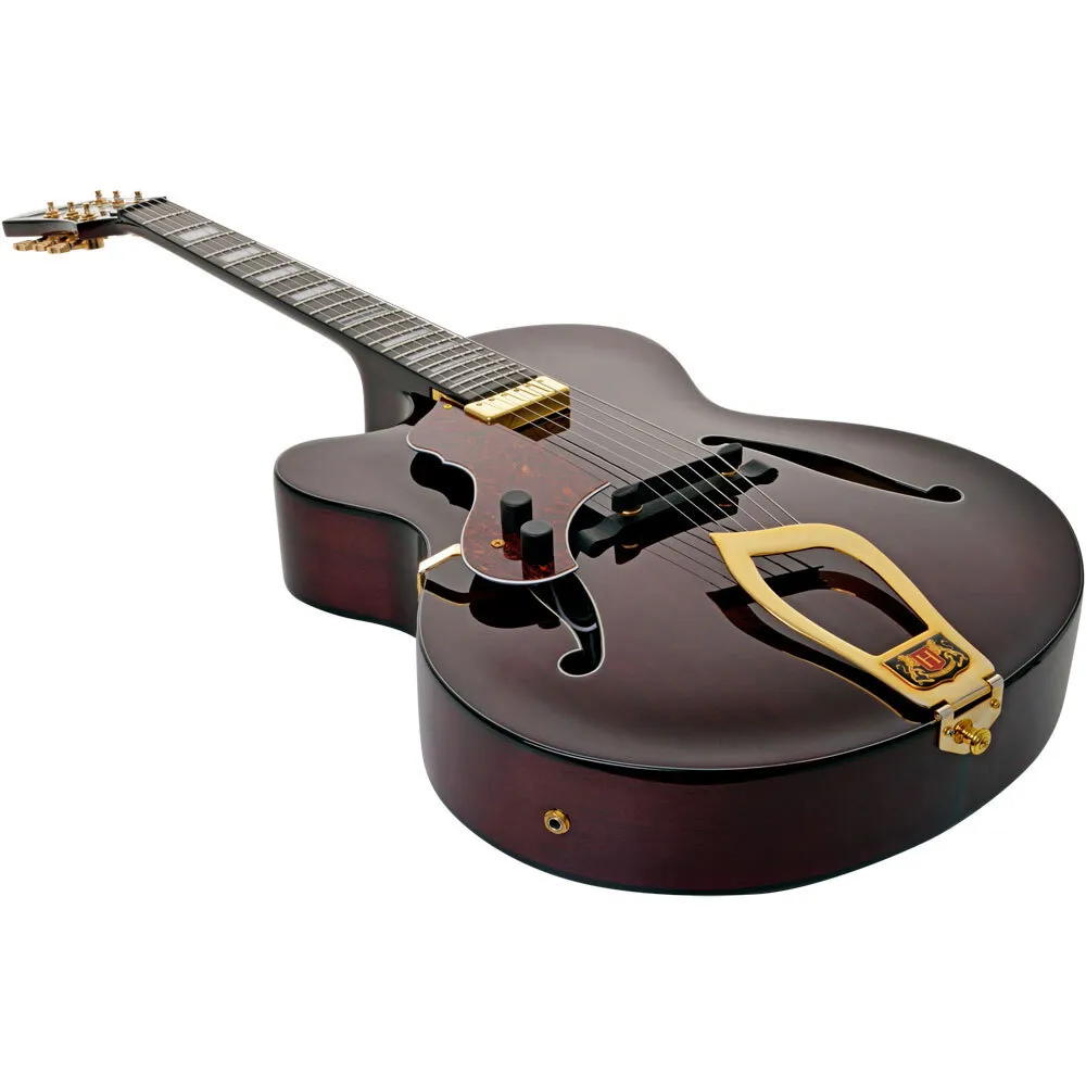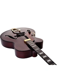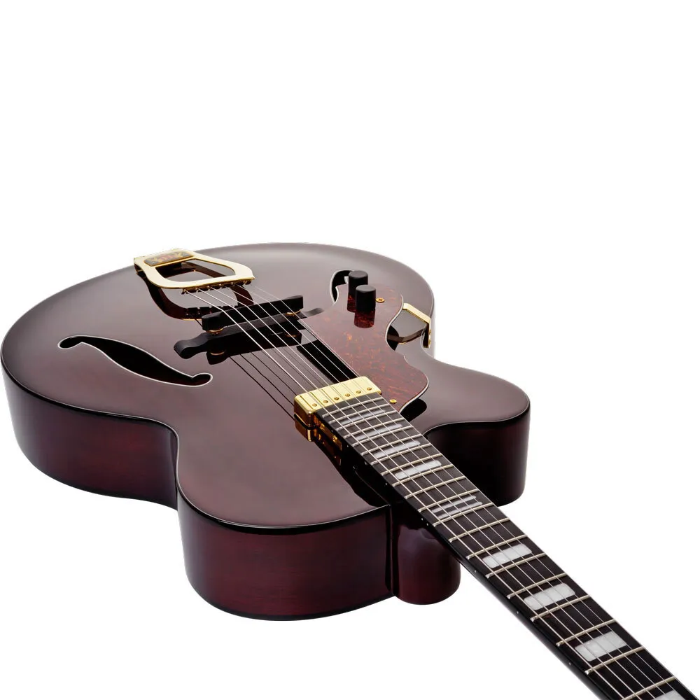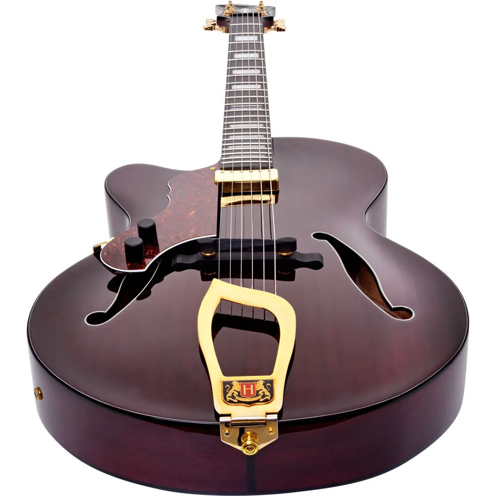 The HL550 features Hagstrom's H-Expander truss rod for added stability and sustain, paired with a comfortable 24.75" scale and 22 medium jumbo frets. The classic ebony Jimmy bridge and trapeze tailpiece provide vintage character and great intonation. This left-handed model is perfect for jazz players wanting refined feel, elegant looks, and a sound that inspires creative expression.