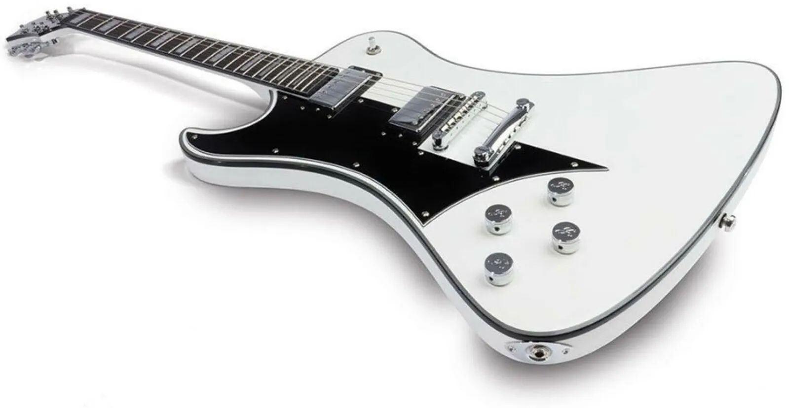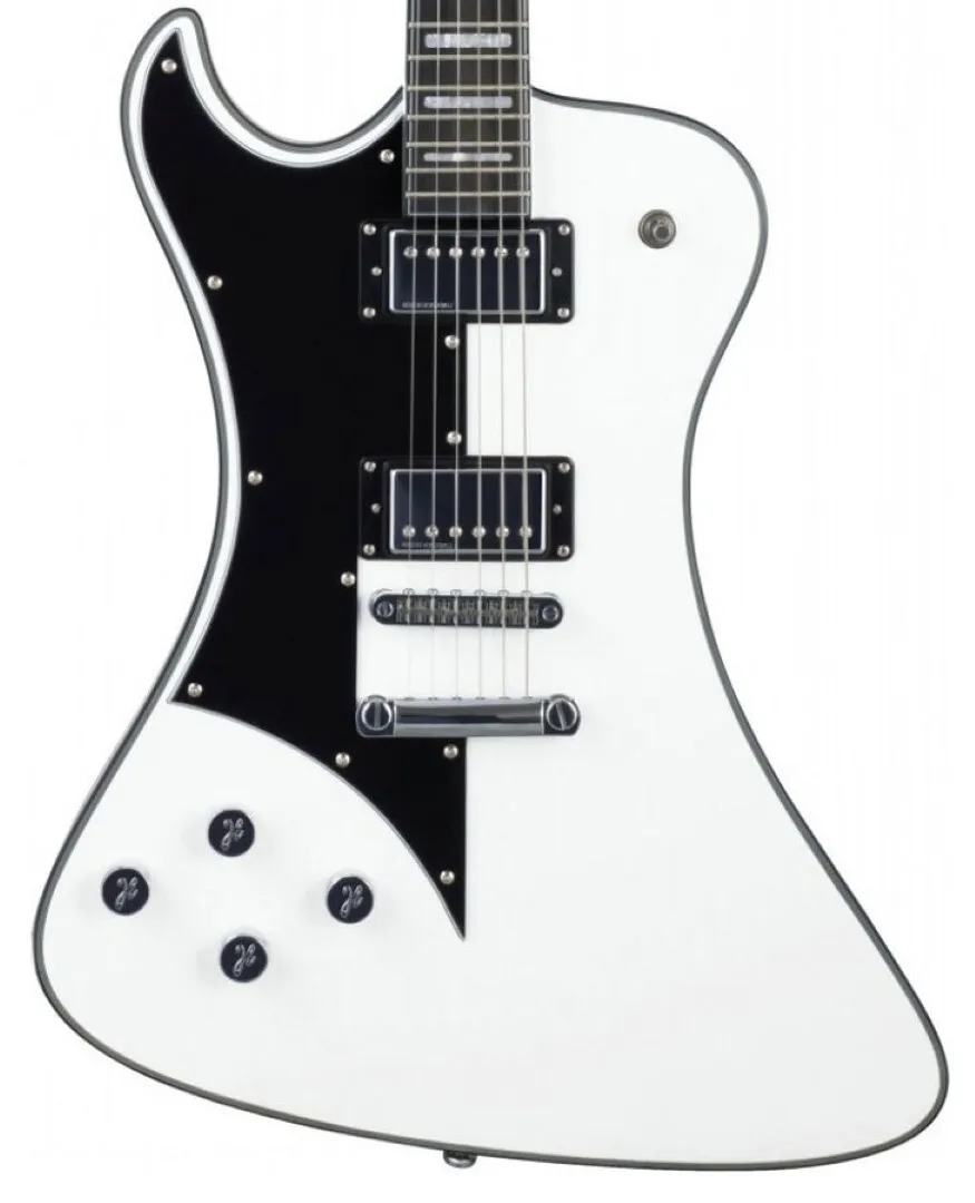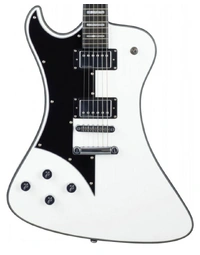 The Hagstrom Left-Handed Fantomen Guitar, finished in White Gloss, is the result of a collaboration between Hagstrom's design gurus and the Swedish band, Ghost. The elegantly asymmetrical Mahogany body and neck are expertly hand carved and joined using Hagstrom's classic mortise-and-tenon set neck joint system, for maximum sustain. A Resinator Wood fingerboard provides comfortable playability for hours on end - Resinator Wood is a wood composite that has a stable, clear and articulate tone similar to Ebony.