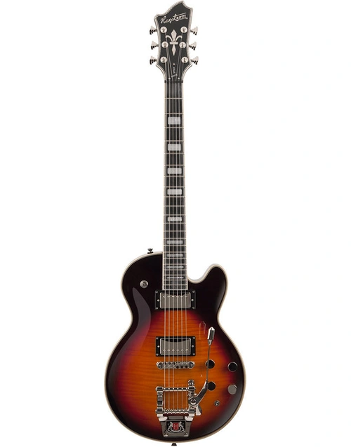 Equipped with dual Hagstrom Custom 58 AlNiCo humbuckers, it produces everything from classic crunch to smooth leads, with coil tap switches expanding tonal options. The roller-equipped Tremar vibrato system ensures smooth pitch modulation without sacrificing sustain or tuning stability. Stainless hardware, 18:1 tuners and a GraphTech Black Tusq XL nut round out this rock-ready powerhouse.