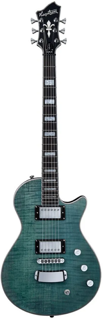 At Riffs & Licks Music, we think the Hagstrom Ultra Max Guitar, finished in Fall Sky Satin, is a great option for anyone looking for a versatile and reliable Les-Paul style electric with a stunning Flame Maple top.