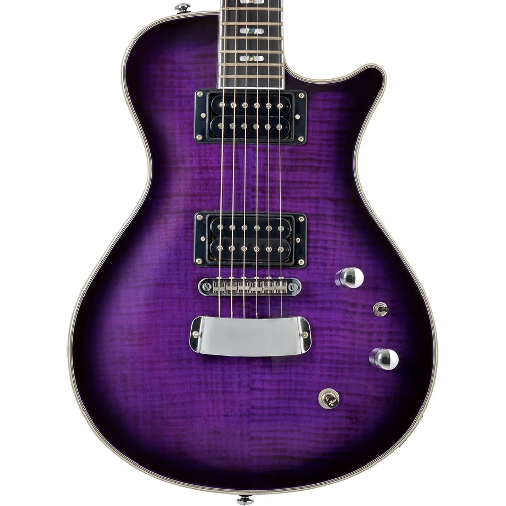 The Hagstrom Ultra Swede in Mystique Burst Gloss is a sleek and compact powerhouse, built for fast playability and tonal versatility. Featuring a 7/8-sized basswood body with a maple top and a slim “D”-profile maple neck, this set-neck guitar is designed for smooth performance and low-action comfort. The Resinator fingerboard and H-Expander truss rod enhance sustain and provide rock-solid stability.