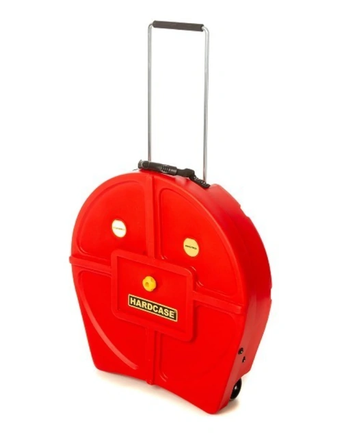 The Hardcase HN12CYM24 24" Cymbal Case in Red keeps up to 12 cymbals safely protected during transport. Built from rugged moulded plastic, it features a pull handle that retracts neatly into the case for compact storage, plus a heavy-duty steel axle with two smooth-rolling 75mm bearing wheels. Inside, a centre spindle with a protective plastic sleeve securely holds cymbals up to 24" in diameter, while 11 included foam dividers prevent metal-to-metal contact. The hinged lid, recessed ID badges, and “Comfy Grip” carry handles make loading and moving your cymbals effortless and secure.