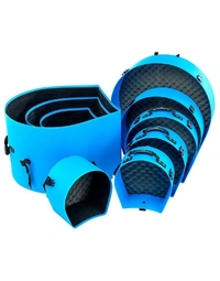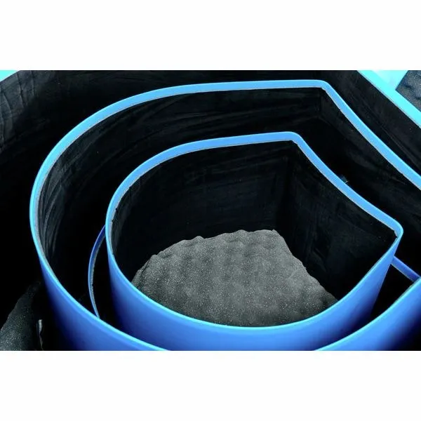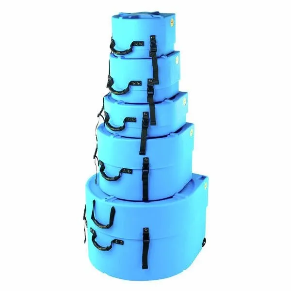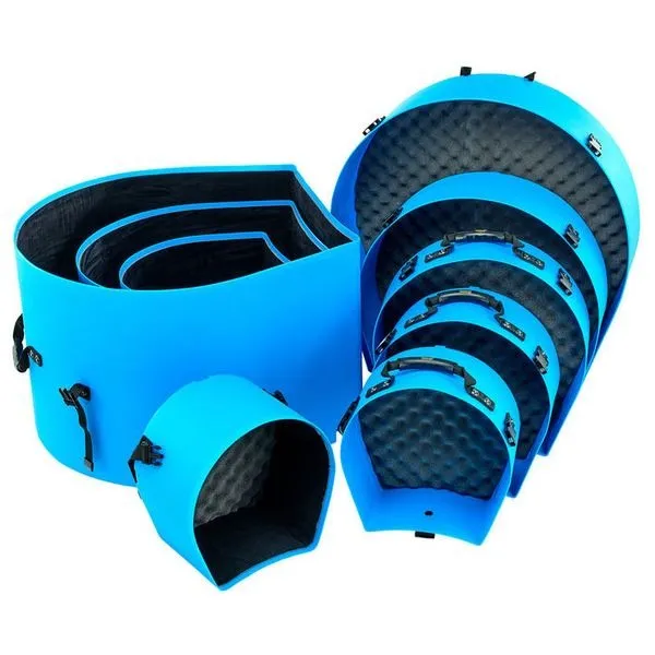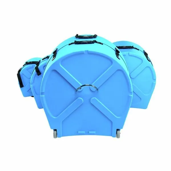 The Hardcase HROCKFUS(3) Lined Series in Light Blue offers durable, travel-ready protection for a full rock fusion kit. Built in the UK from tough polyethylene, these cases provide high-impact and splash-proof defence to keep your drums safe on the road. The fully lined interior minimises scuffs and impact transfer, while vented lids help manage pressure changes during transit. Comfortable carry and pull handles make transport easier, and each case stacks securely for tidy storage. Strong 30mm webbing and robust clips keep everything firmly closed, and the bass drum case includes wheels for smoother movement.