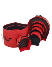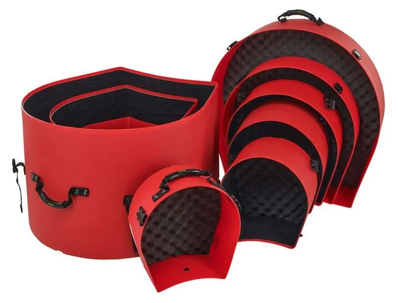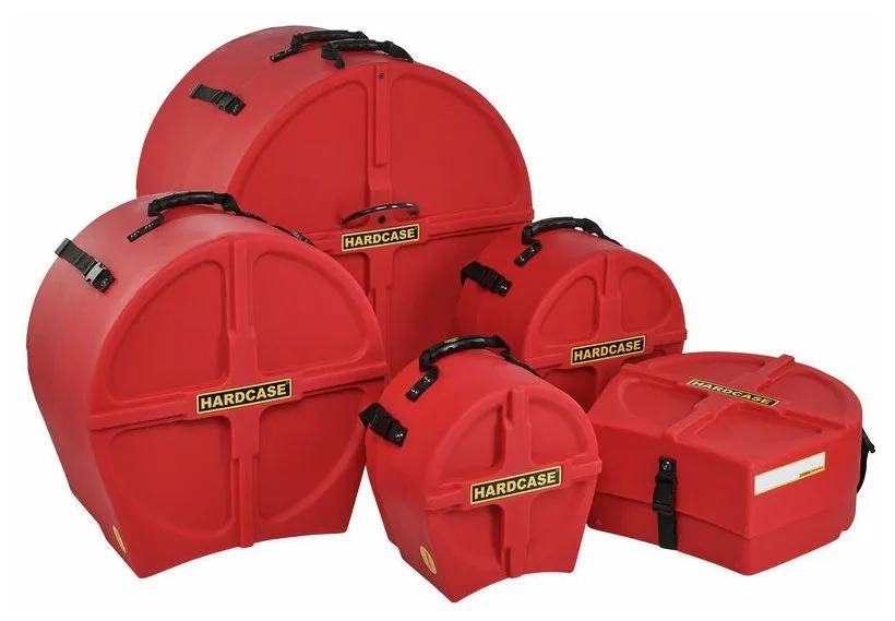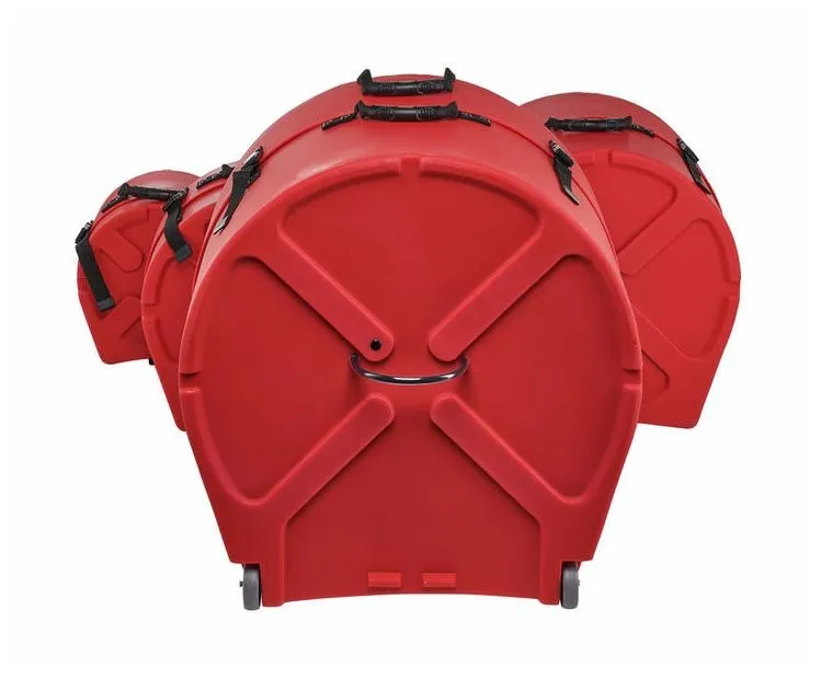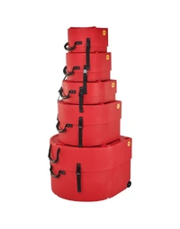 The Hardcase HROCKFUS(3) Lined Series in Red delivers tough, road-ready protection for drummers who need their gear to withstand constant transport. Made in the UK from high-impact polyethylene, each case offers strong splash-proof defence and a fully lined interior that safeguards shells and hardware. Practical touches include vented lids, comfy carry and pull handles, secure 30mm webbing, and reliable clips for a tight closure. The set is fully stackable for easy storage, and the bass drum case features wheels to make moving larger drums effortless.