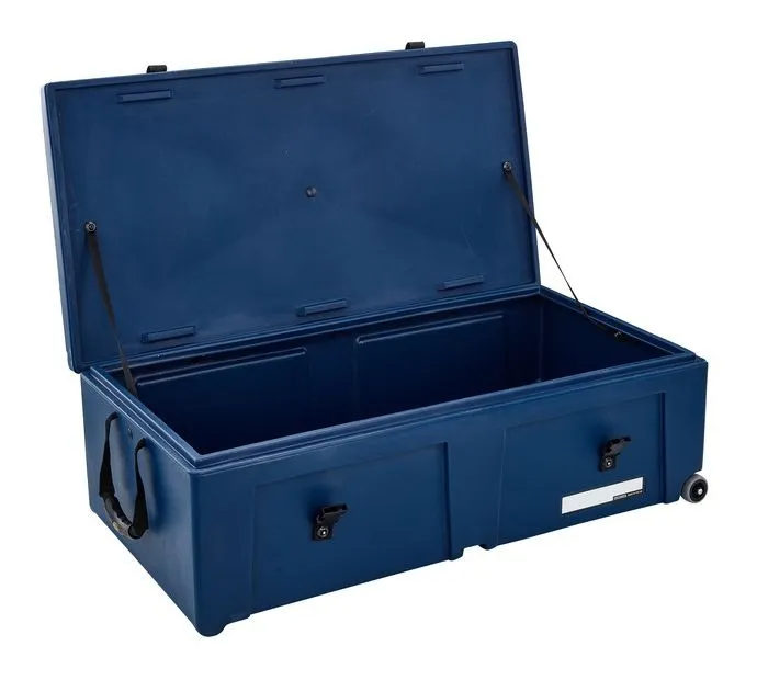 Heavy-duty wheels and an integrated pull handle make moving heavier loads easier, while a comfortable carry handle supports quick lifting when needed. The vented lid design helps reduce pressure changes and moisture build-up during transport. Internal webbing straps and high-strength fittings keep contents secure, while the stacking design allows multiple cases to be stored efficiently.