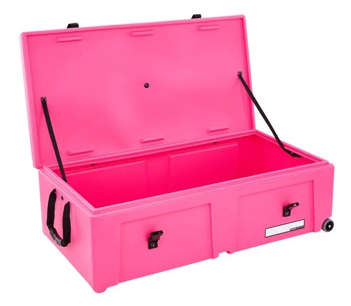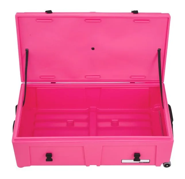 Heavy-duty wheels and an integrated pull handle make moving heavier loads easier, while a comfortable carry handle supports quick lifting when needed. The vented lid design helps reduce pressure changes and moisture build-up during transport. Internal webbing straps and high-strength fittings keep contents secure, while the stacking design allows multiple cases to be stored efficiently.