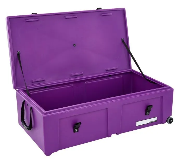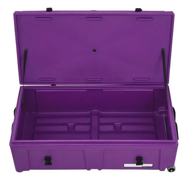 Heavy-duty wheels and an integrated pull handle make moving heavier loads easier, while a comfortable carry handle supports quick lifting when needed. The vented lid design helps reduce pressure changes and moisture build-up during transport. Internal webbing straps and high-strength fittings keep contents secure, while the stacking design allows multiple cases to be stored efficiently.