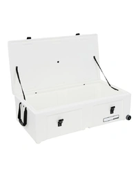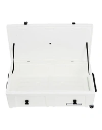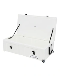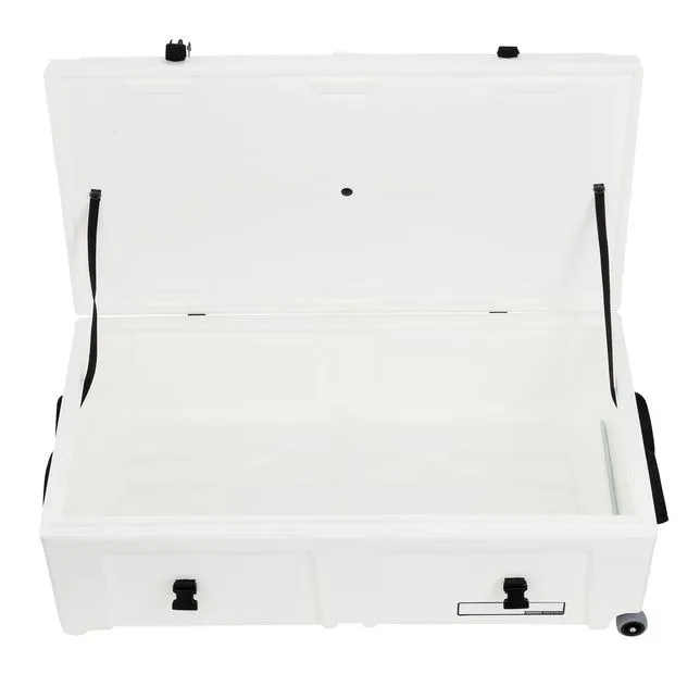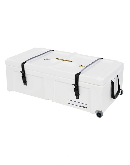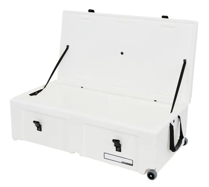 Heavy-duty wheels and an integrated pull handle make moving heavier loads easier, while a comfortable carry handle supports quick lifting when needed. The vented lid design helps reduce pressure changes and moisture build-up during transport. Internal webbing straps and high-strength fittings keep contents secure, while the stacking design allows multiple cases to be stored efficiently.