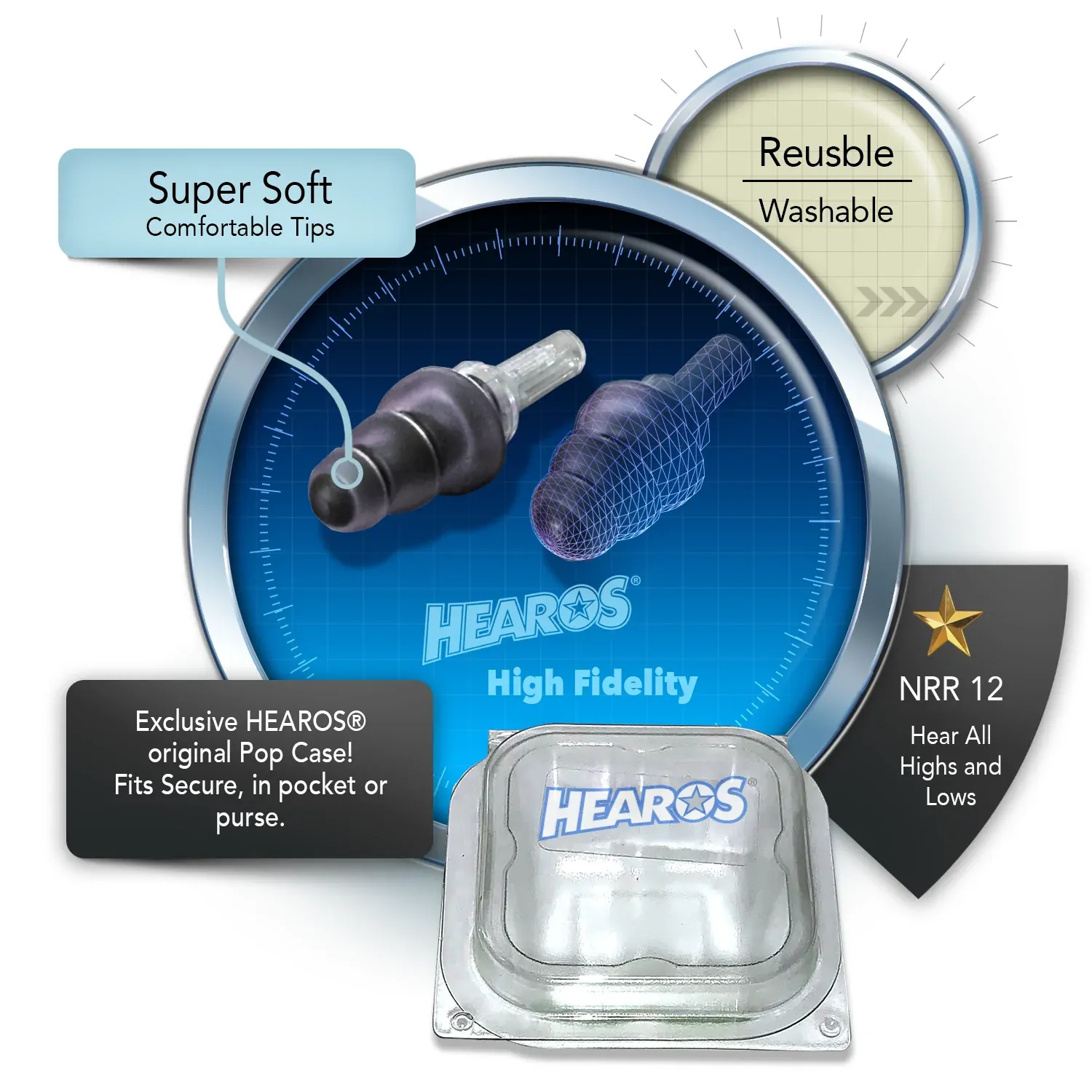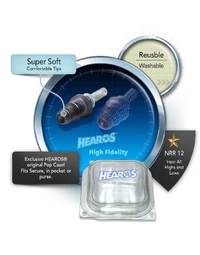 Hearos Hi Fidelity Musician's Ear Plugs (Regular Size) reduce noise by up to 20dB without distorting sound, letting you enjoy music as it was meant to be heard. Featuring soft triple-flange translucent silicone and clear stems, they are discreet, comfortable, and ideal for concerts, rehearsals, and festivals. These ear plugs conform to the shape of your ear for all-day wear and come with a pocket-size keychain case for convenient storage. Built with strict quality control for reliable attenuation, they let you hear conversations and music clearly while protecting your hearing. At Riffs & Licks Music, we think these ear plugs are an essential accessory for musicians and music fans who want to protect their hearing without sacrificing sound quality.