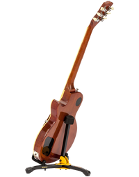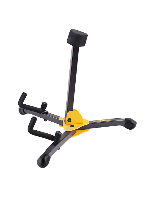 The Hercules GS402BB Folding Electric Guitar Stand is a compact and lightweight solution for electric and bass guitars. Its all-in-one folding design allows for quick setup and easy storage in the included carrying bag. Locking pins on the base ensure a secure hold, while specially formulated foam padding protects your instrument at all contact points. Built for convenience and stability, this stand is perfect for home, studio, or stage use.